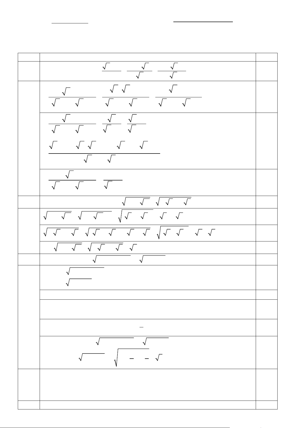 Q = 13+ 4 10 − 17 2 +11 5 . 1,5 + = + + = ( + )2 13 4 10 5 4 10 8 5 2 2 = 5 + 2 2 0,75 + = + + + = ( + )3 3 3 3 17 2 11 5 2 2 6 5 15 2 5 5 2 5 = 2 + 5 0,5 3