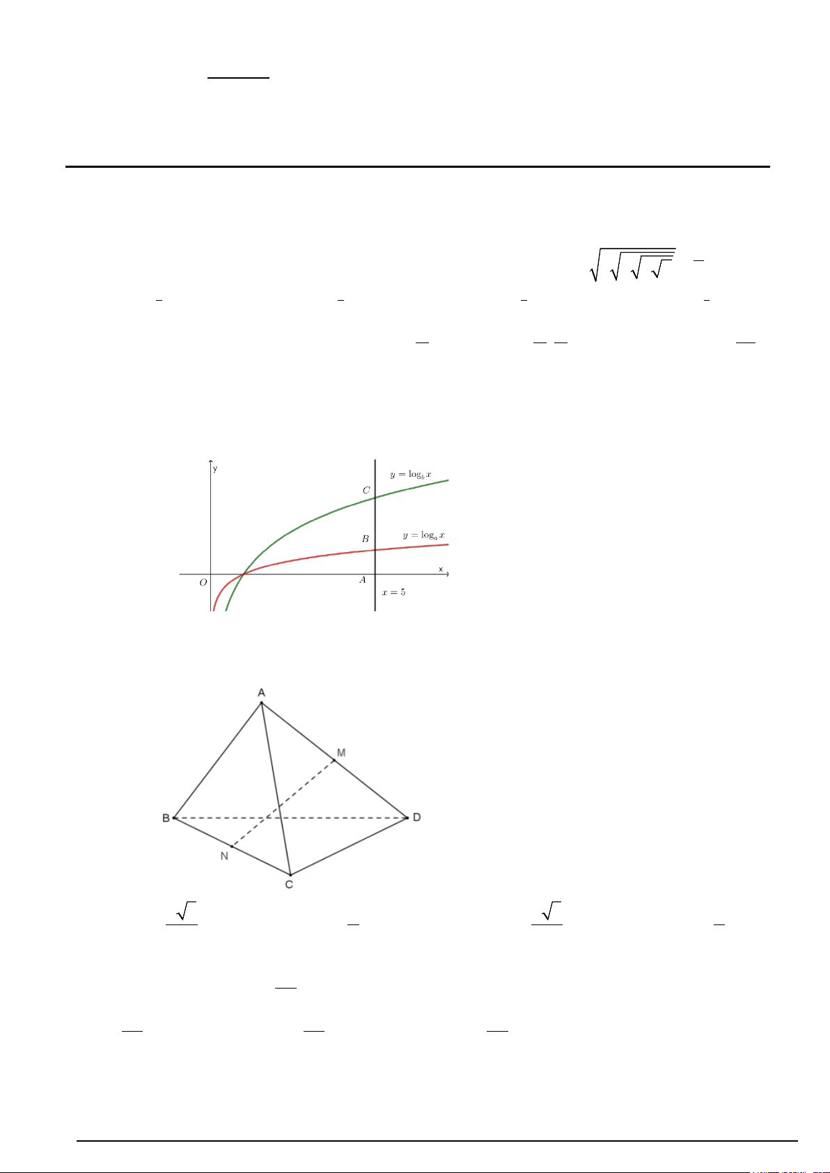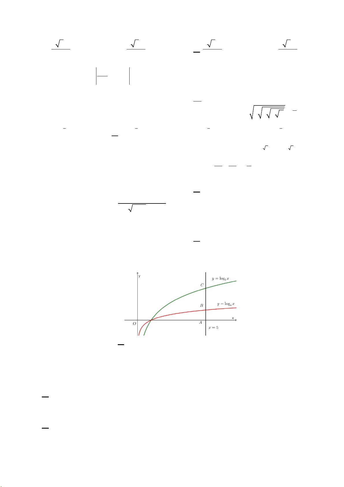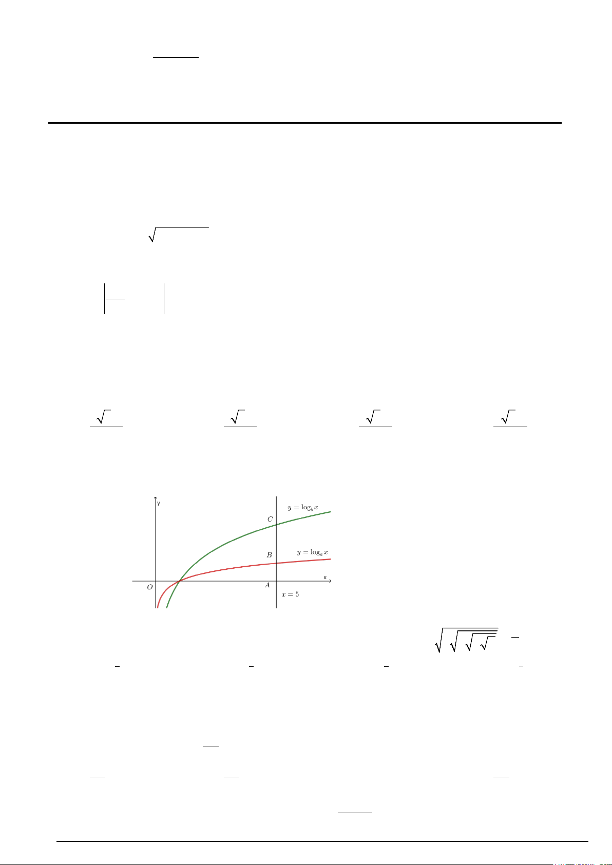 logb có đồ thị như hình vẽ bên. Đường thẳng x = 5 cắt trục