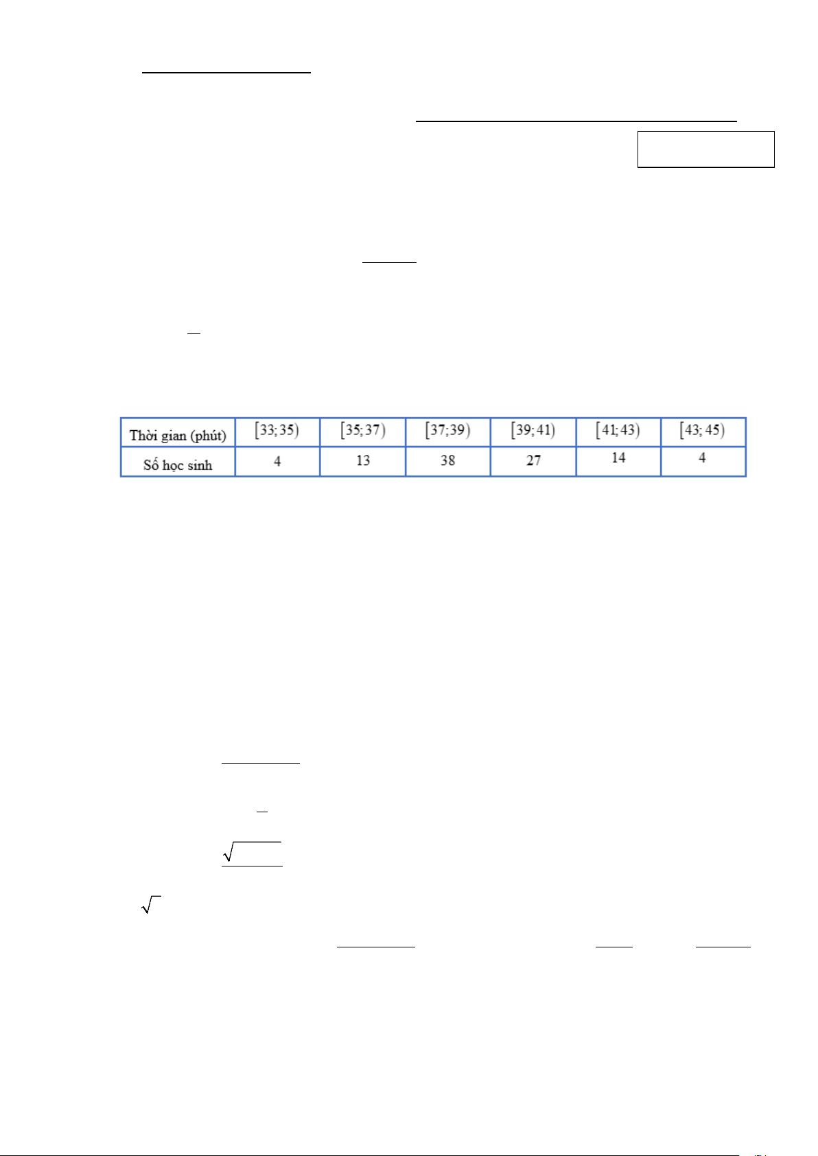 Câu 2. Cho mẫu số liệu ghép nhóm về thống kê thời gian hoàn thành (phút) một bài kiểm tra