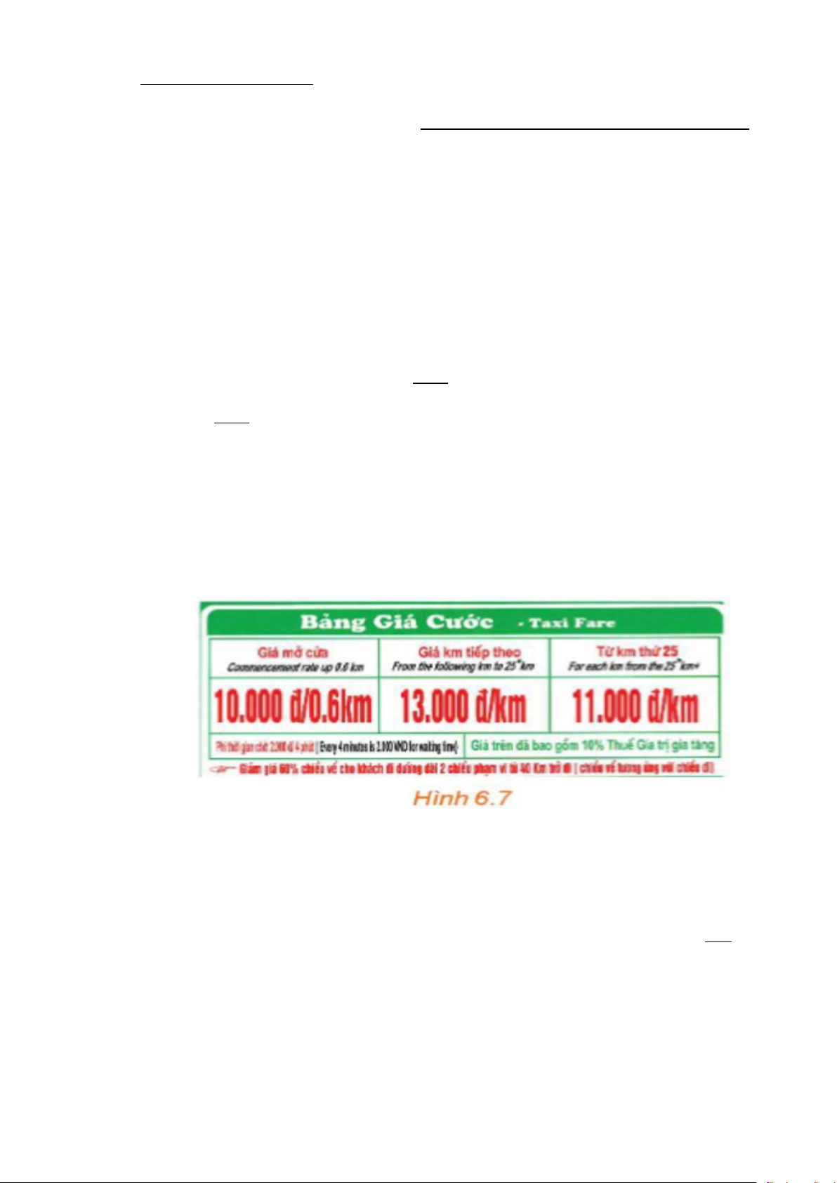 c) Hình 6.7 là bảng giá cước taxi bốn chỗ của một hãng taxi A. Bác An quê ở