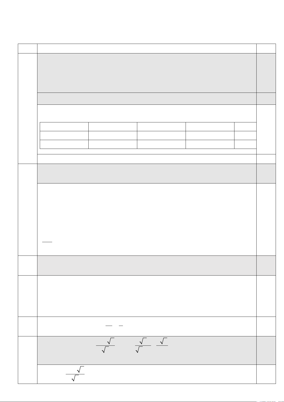 Ghi chú: Học sinh giải cách khác đúng cho đủ điểm theo từng phần. Bài/ý Nội dung Điểm