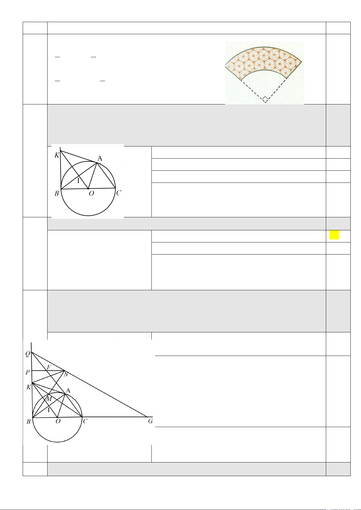 Từ đó suy ra OA ⊥ AK tại A Mà A thuộc (O) 0,25