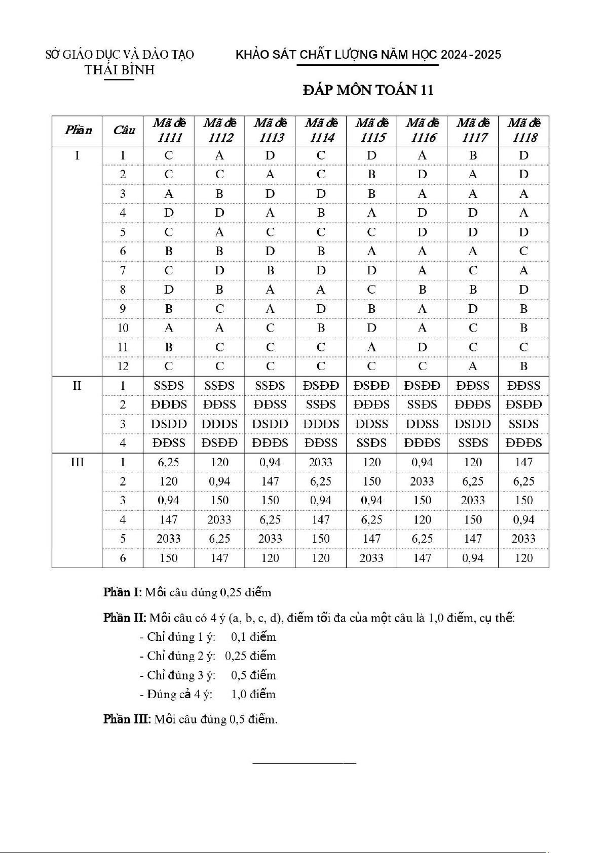 Đề khảo sát chất lượng Toán 11 năm 2024 – 2025 sở GD&ĐT Thái Bình