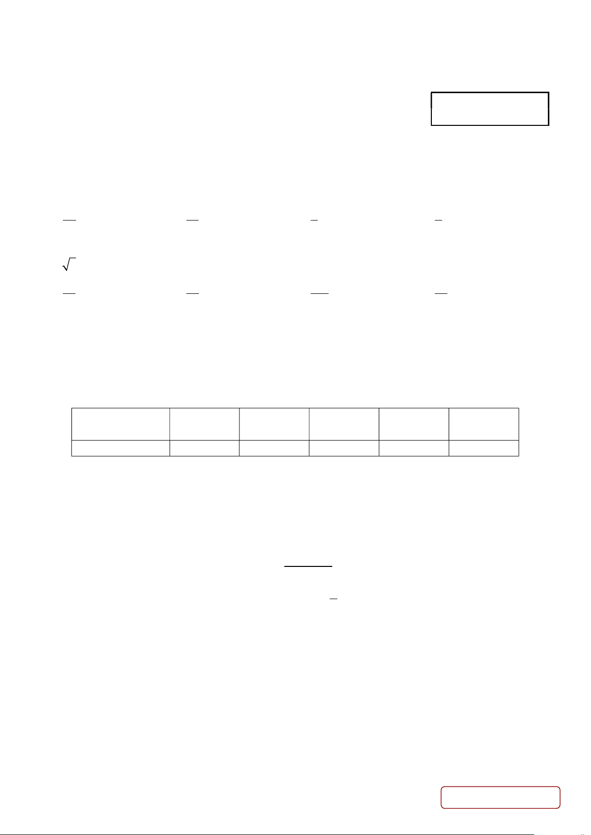 Câu 8. Chọn ngẫu nhiên 2 viên bi từ một hộp có 10 viên bi (gồm 6 bi xanh và 4 bi đỏ), xác suất chọn được 2 viên bi màu đỏ là 2 1 2 2 A. . B. . C. . D. . 3 5 15 5 x −