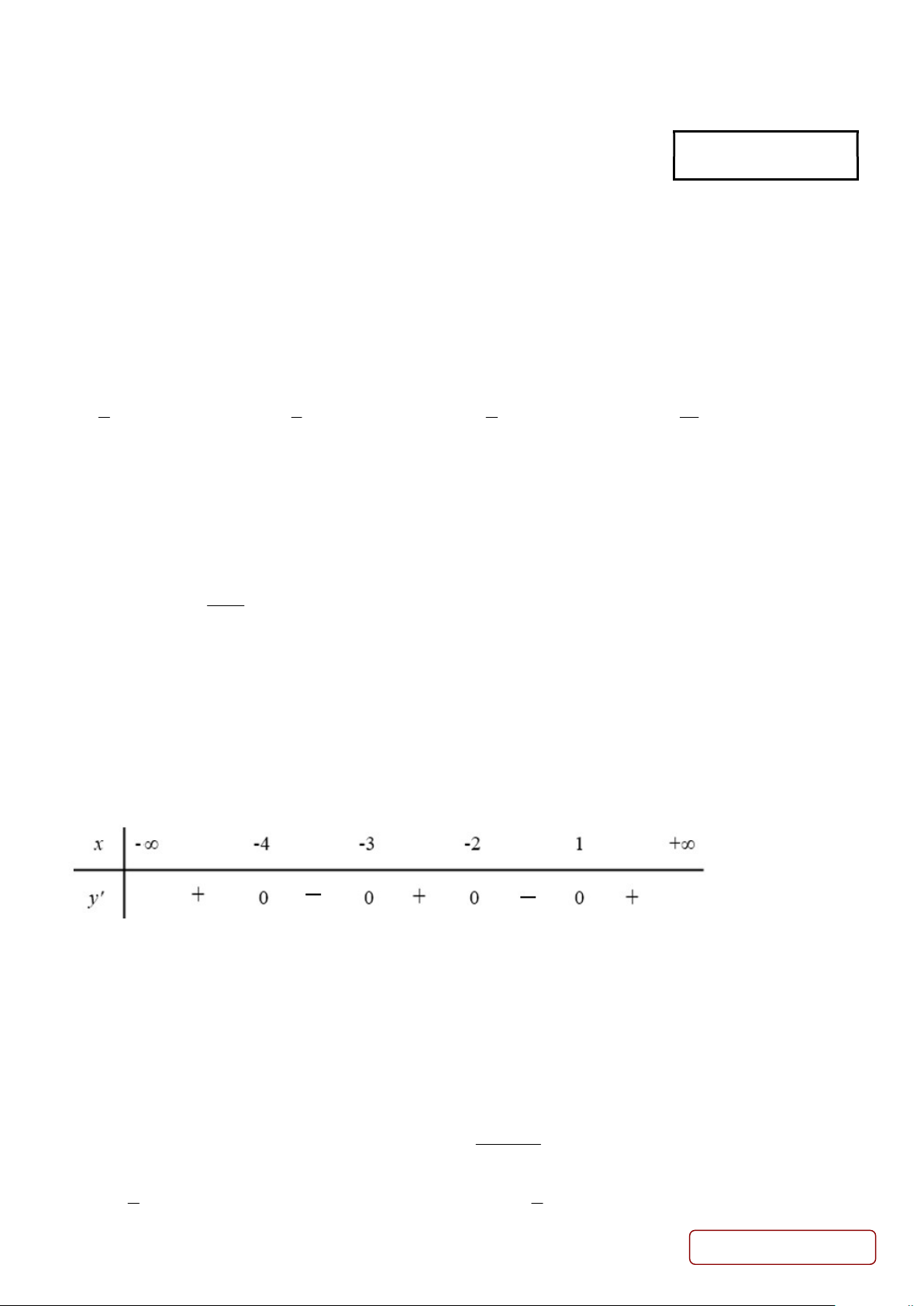 Câu 11. Cho hàm số y f x liên tục trên và có bảng xét dấu của f 'x như hình dưới đây