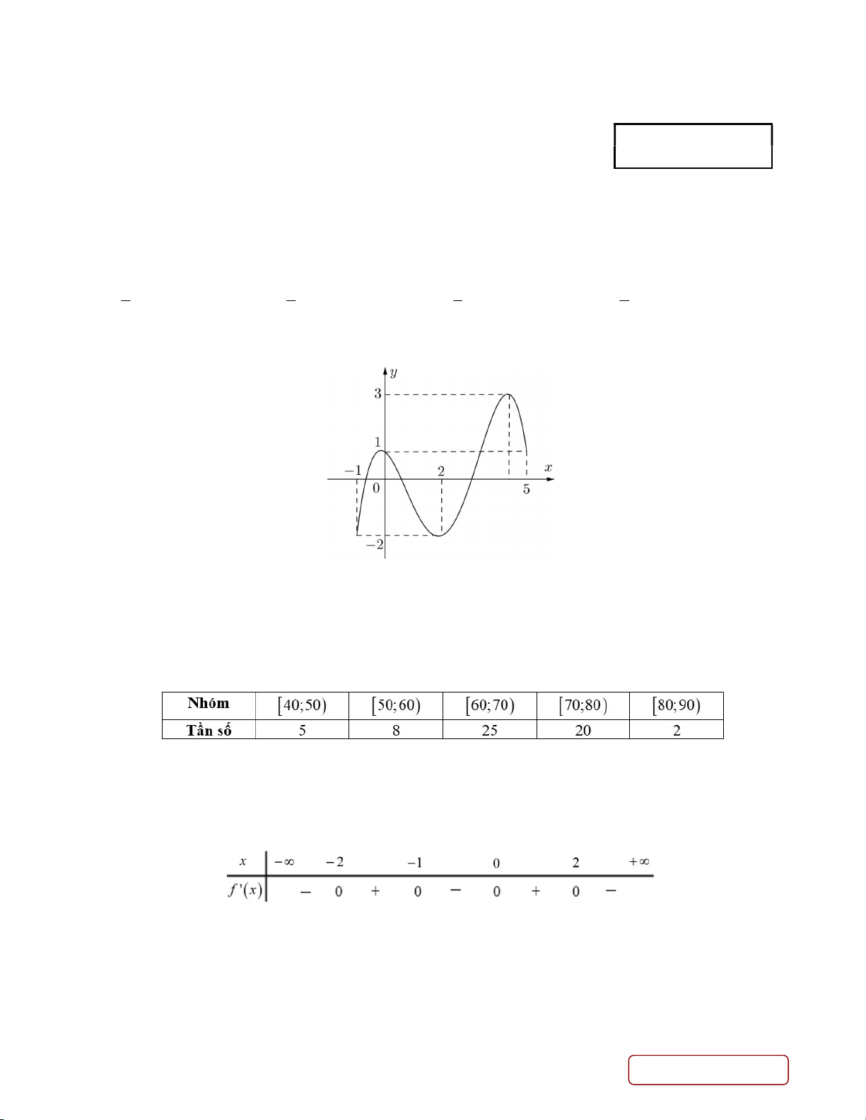 Câu 3. Cho hàm số y = f ( x) liên tục trên đoạn 0;