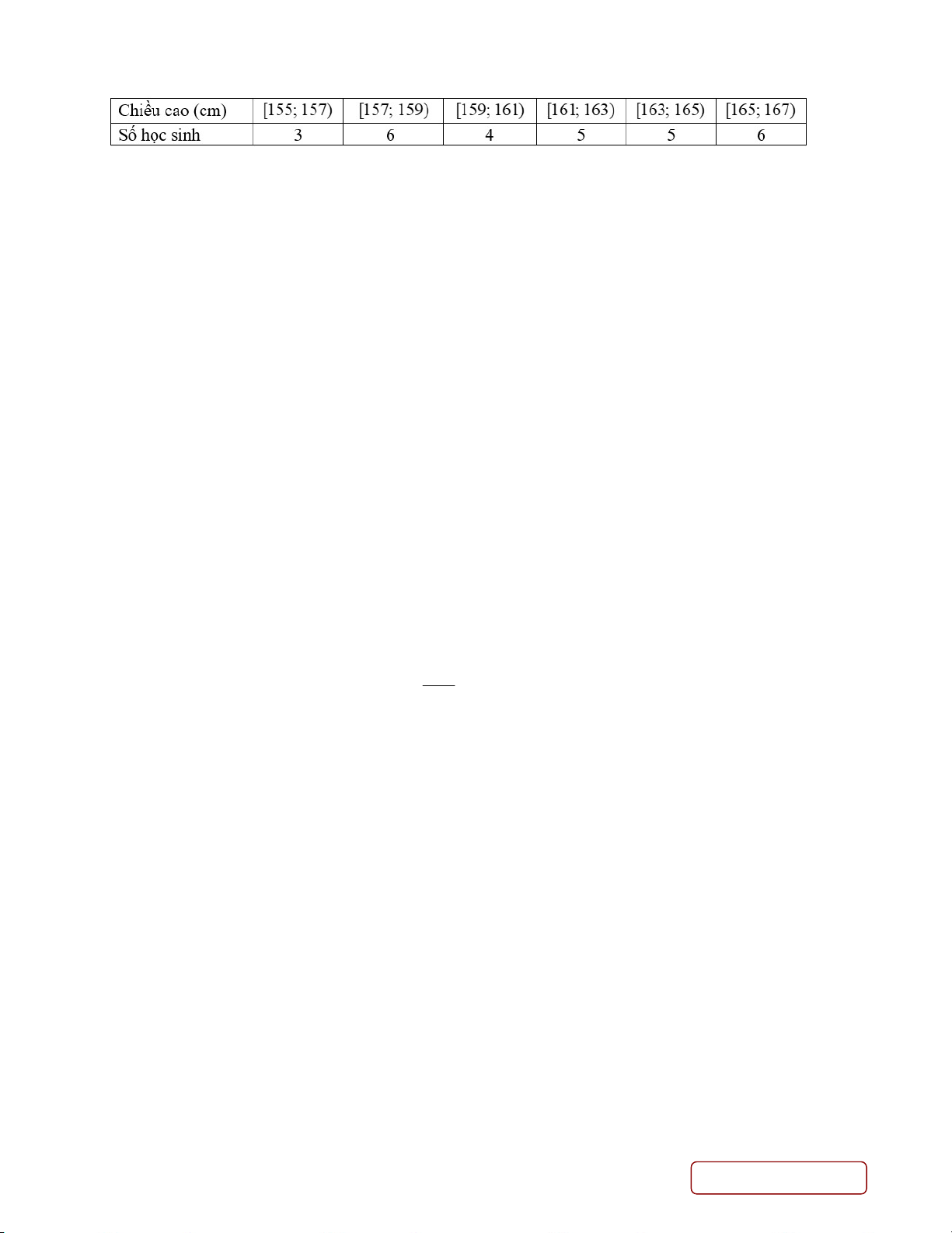 Câu 3. Một bác tài xế thống kê lại độ dài quãng đường bác đã lái xe mỗi ngày trong một tháng ở bảng sau: Độ dài quãng [50; 100) [100; 150) [150; 200) [200; 250) [250; 300) đường (km) Số ngày 5 10 9 4 2