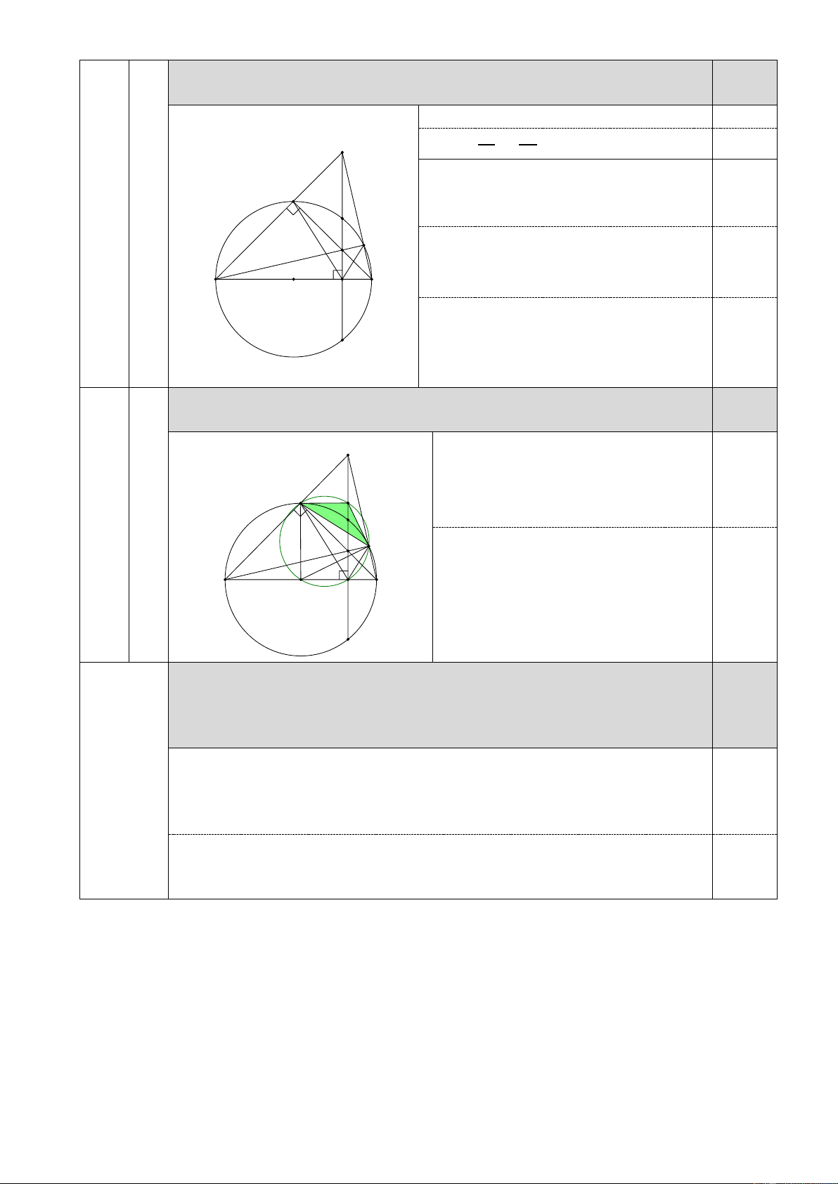 𝐴𝐵 thì đường tròn ngoại tiếp 𝑇𝑄𝐸 luôn đi qua điểm cố định. P Chứng minh 𝑃𝑄𝑇 ̂ = 𝑂𝑄𝐵 ̂ Suy ra 𝑂𝑄𝑇 ̂ = 𝑂𝑄𝐵 ̂ + 𝐾𝑄𝑇 ̂ E T 0,25 = 𝑃𝑄𝑇 ̂ + 𝐾𝑄𝑇 ̂ = 𝑃𝑄𝐾 ̂ = 90𝑜 IV 2c C K Q
