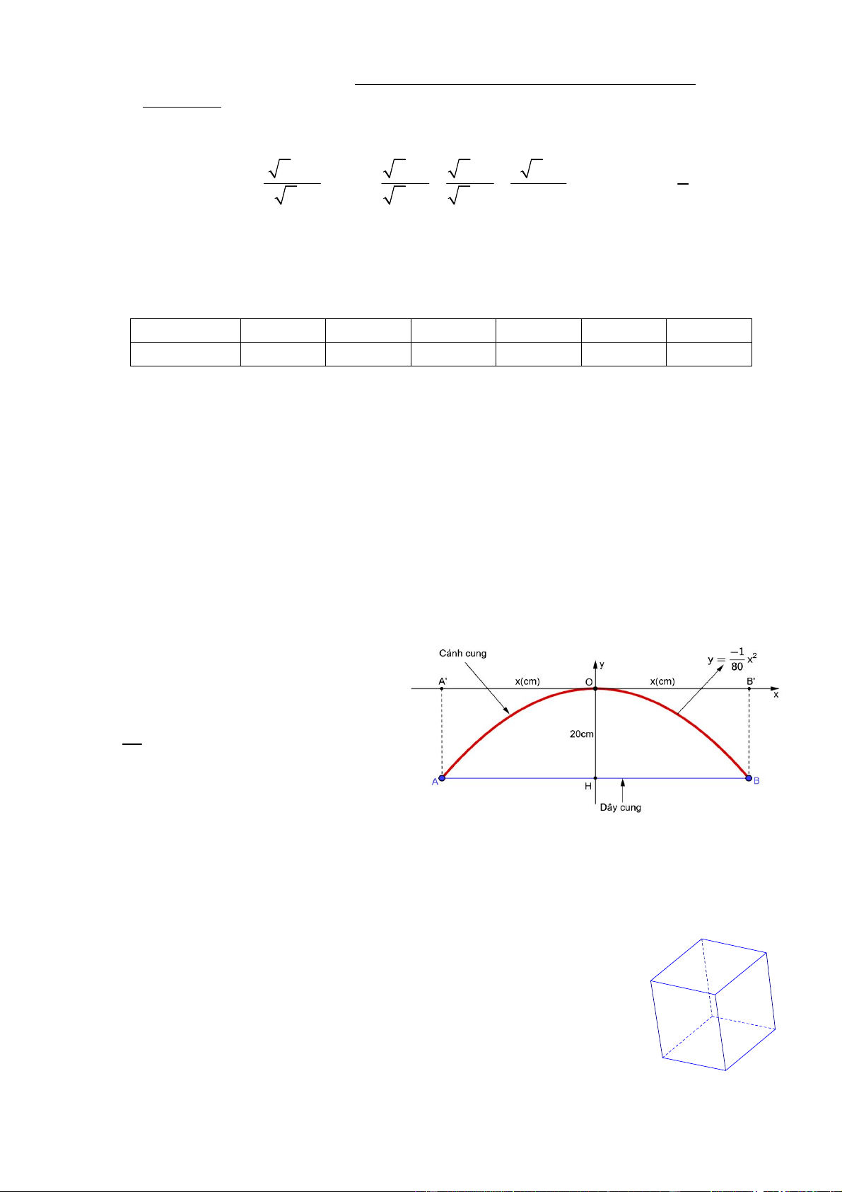 Gọi chiều cao của khối hộp là h (dm), điều kiện h 0 . 0.25 (0,5) 8