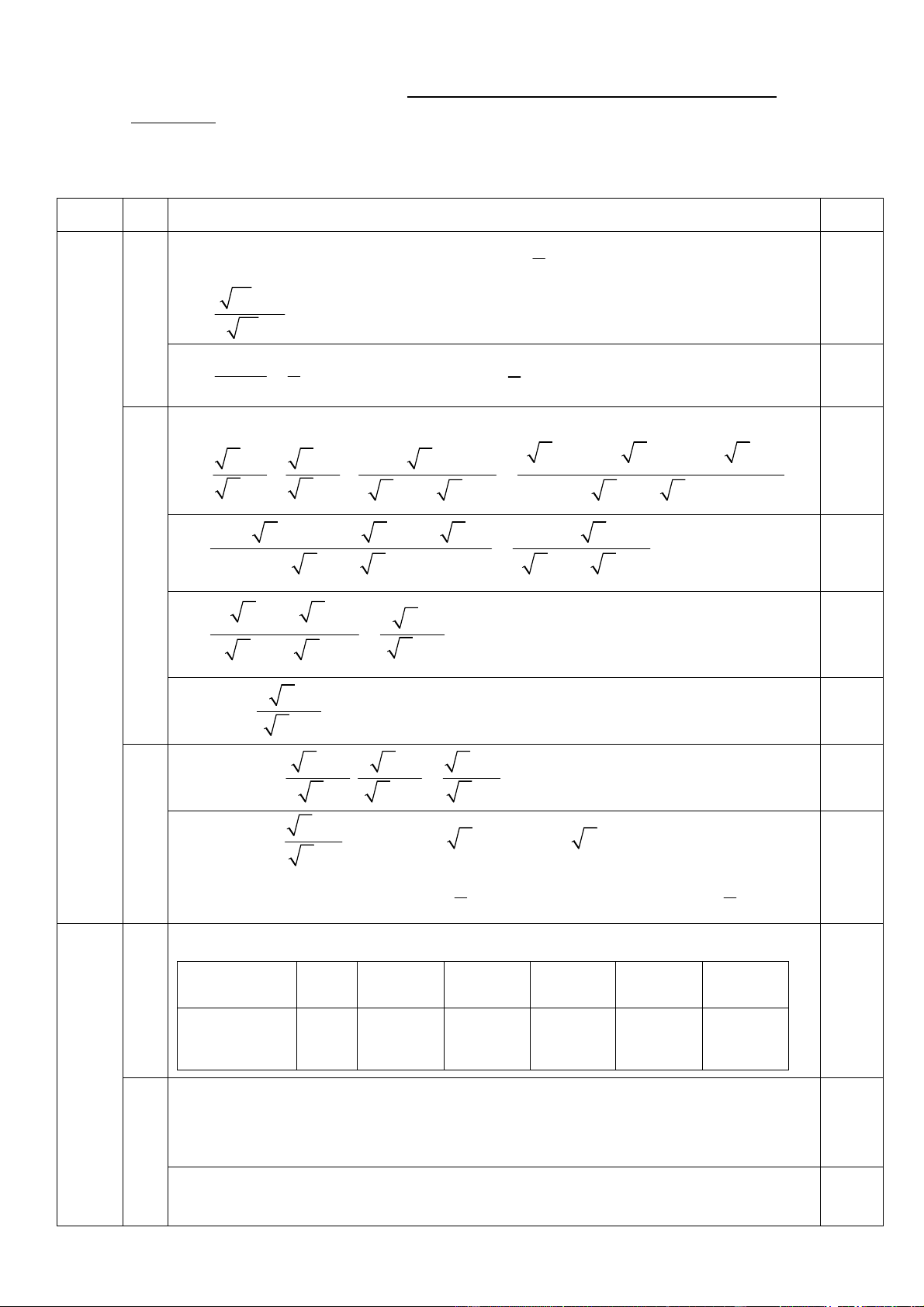 HƯỚNG DẪN CHẤM VÀ BIỂU ĐIỂM MÔN TOÁN 9 (Gồm 04 trang) Câu Ý Nội dung Điểm Câu 1 a) 1