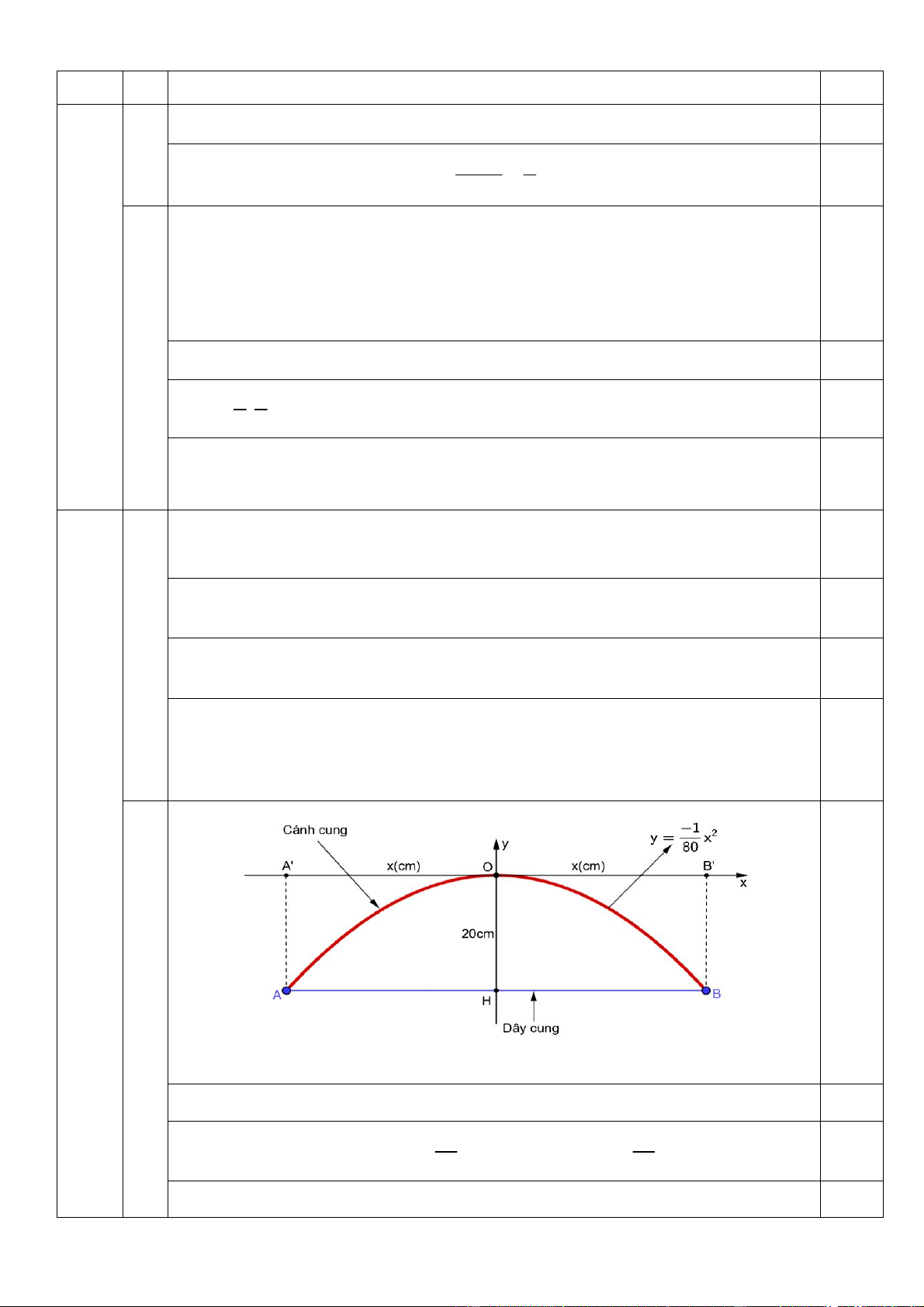 Khi đó điểm B có tọa độ x; 20 . 0,25 1 1 0,25 Vì điểm B thuộc parabol 2 y x nên ta có 2 20 x suy ra x 40 80 80