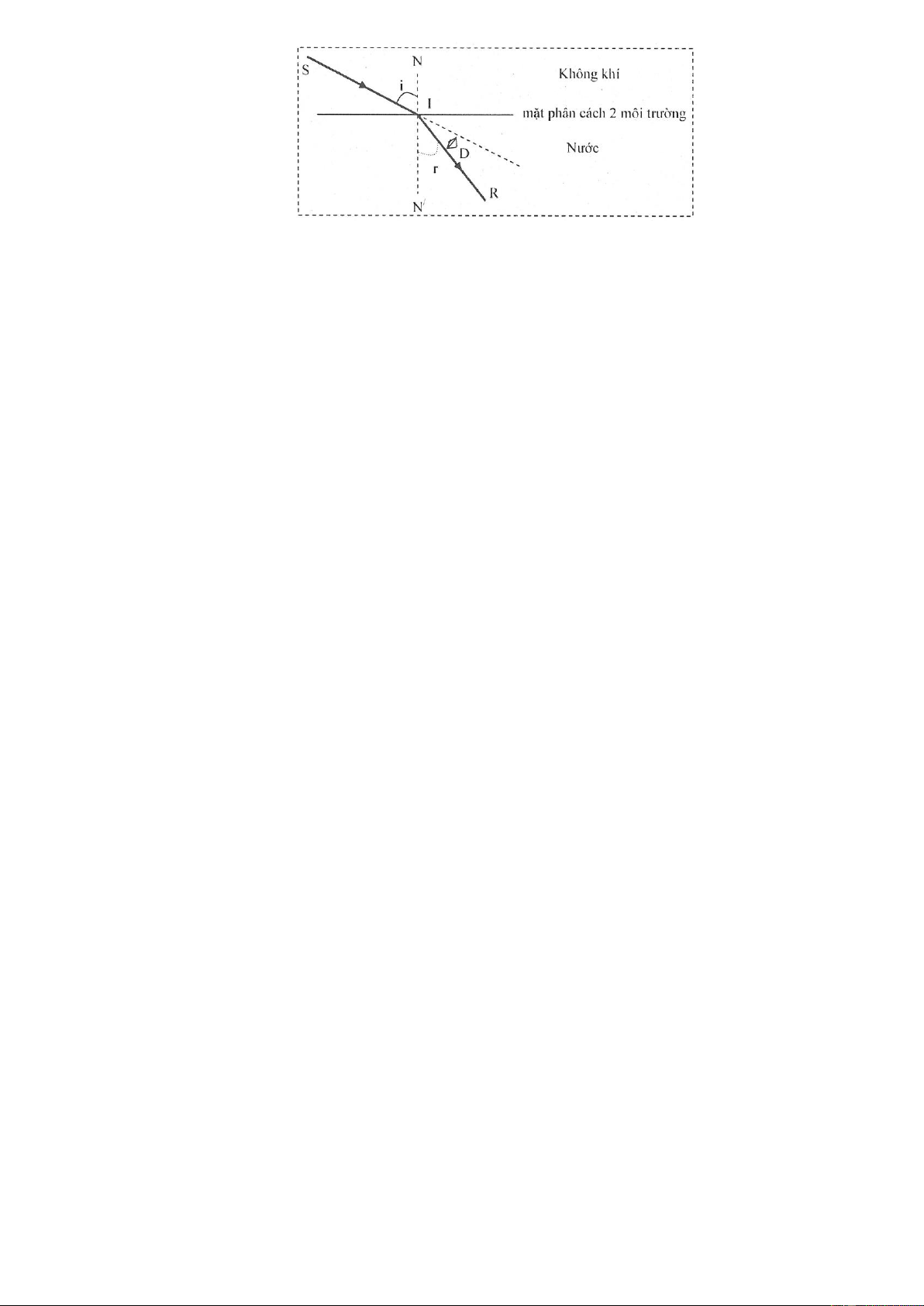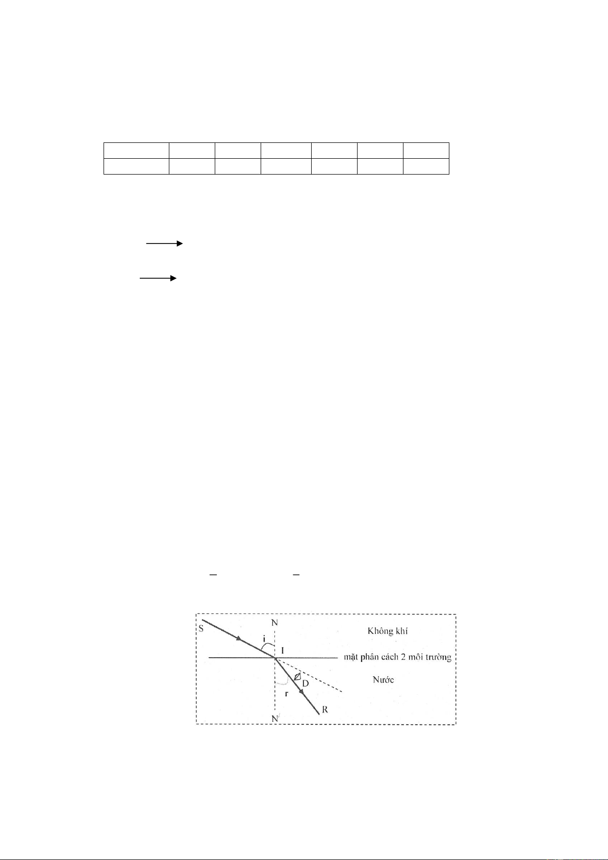 Câu 5.(1,5 điểm): Chiếu một tia sáng từ không khí vào nước với góc tới 30 . Cho biết chiết suất