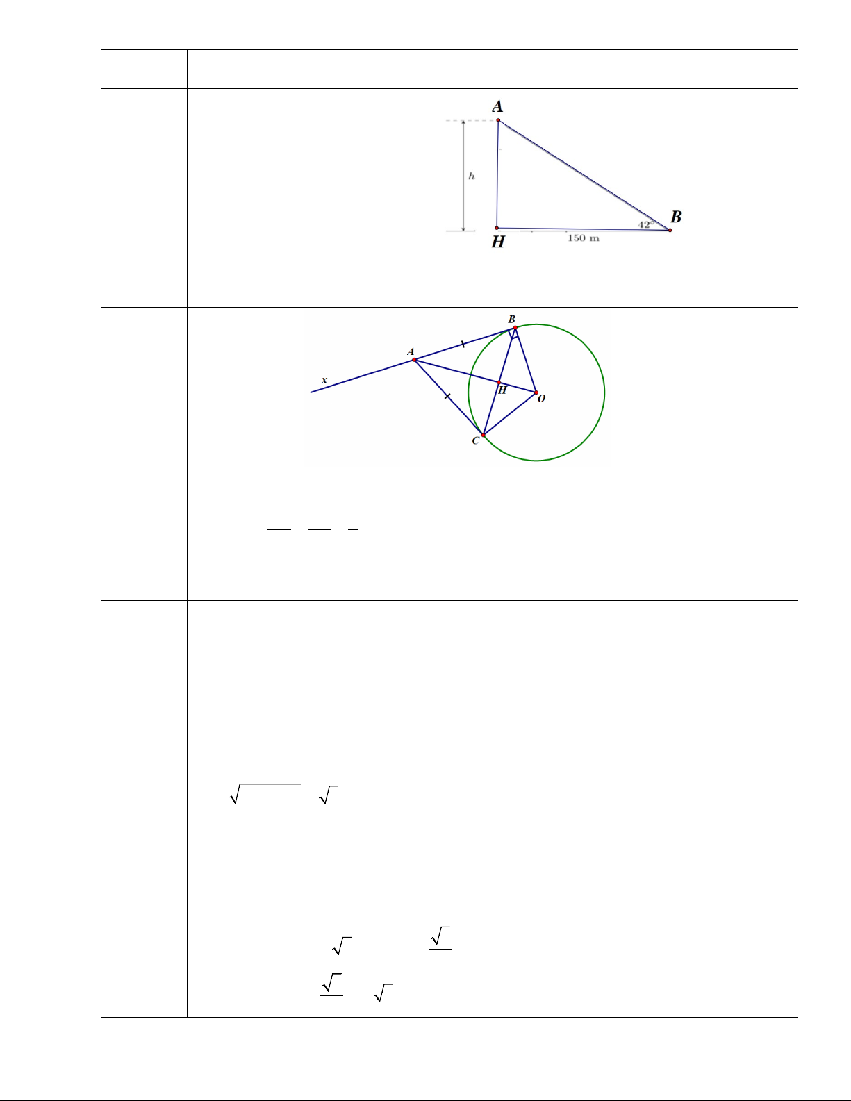 Vậy tòa tháp cao khoảng 135,06met   0,25  4.2    Hình    0,25 đ        0,25    1,0 đ