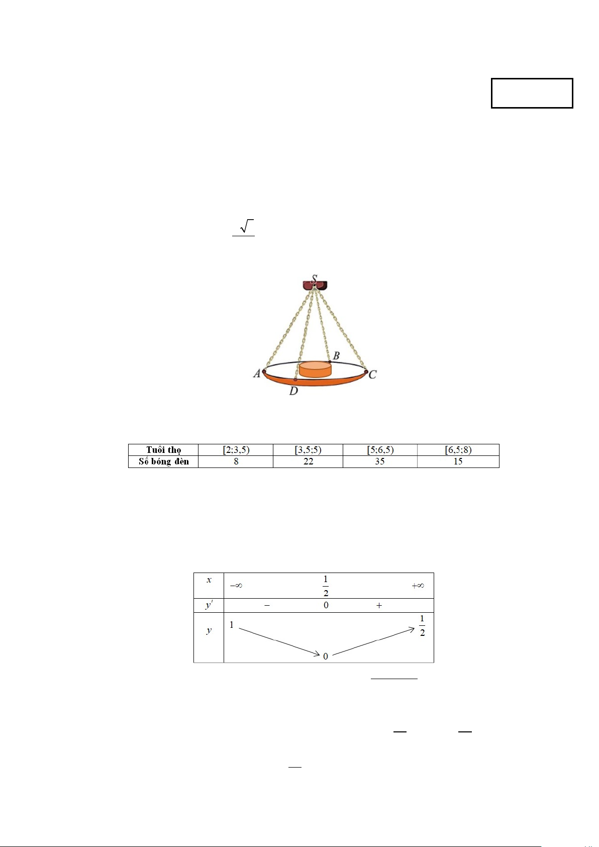 Câu 2. Cho mẫu số liệu ghép nhóm về tuổi thọ (đơn vị tính là năm) của một loại bóng đèn mới như sau.