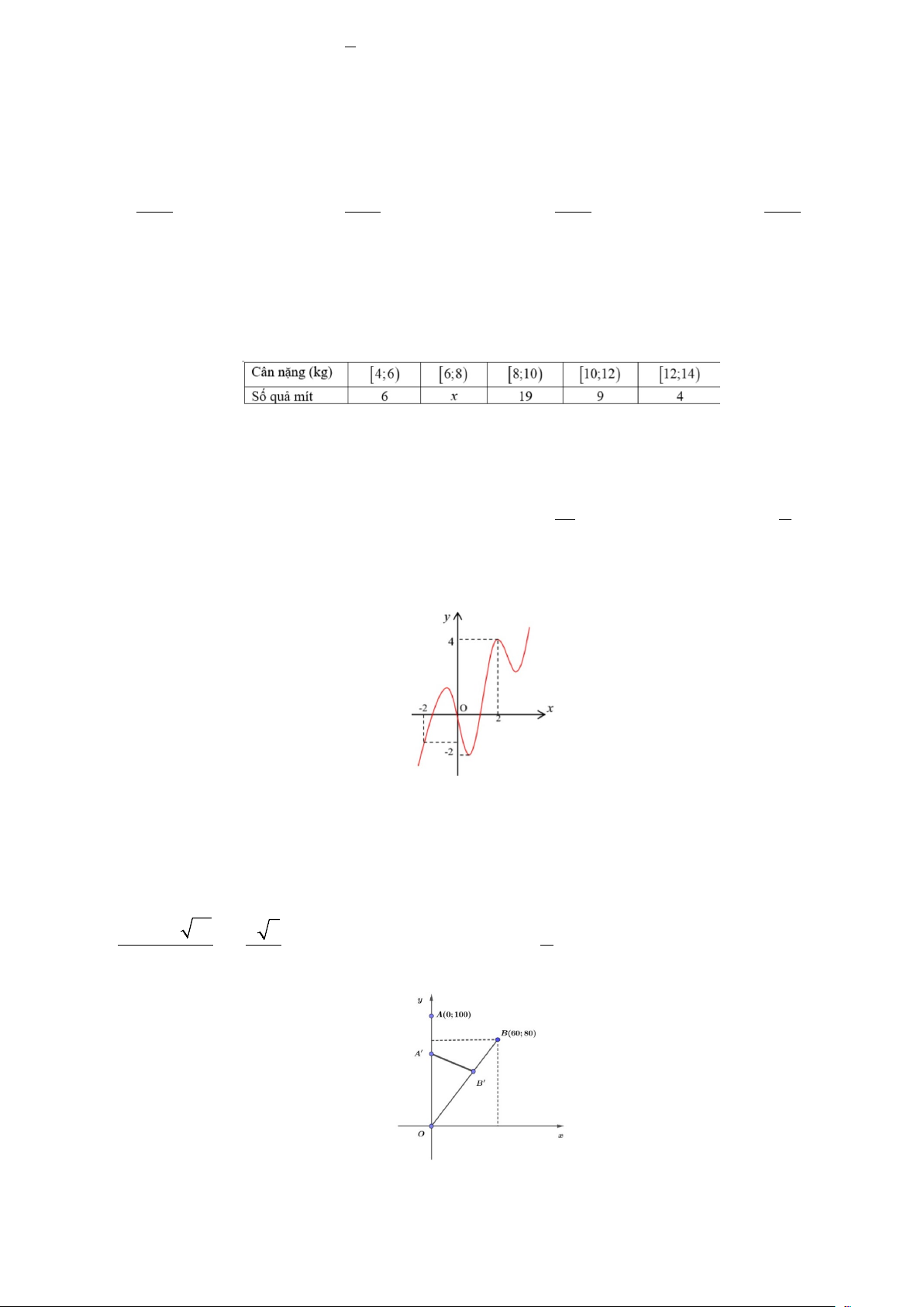 Câu 17. Cân nặng của một số quả mít trong một khu vườn được thống kê ở bảng sau: