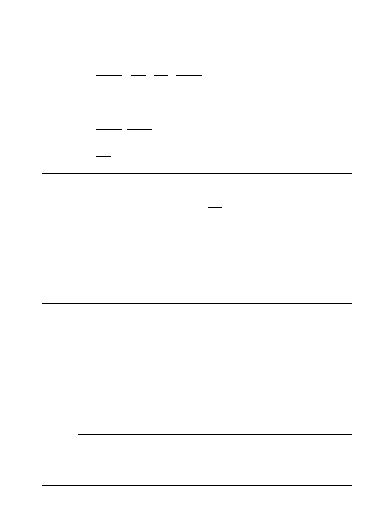 3) Với x >1. Tính giá trị biểu thức A khi ( − )2 x 1 = 9. 1 2 2 x + x x +1 1 2 − x 2,0đ A = : − + 2 2 x − 2x +1 x 1− x x − x x(x + ) 2 1 x +1 1 2 − x A 0,5 = : + + (x − )2 1 x x 1 x(x ) 1 − − x(x + ) 2 2