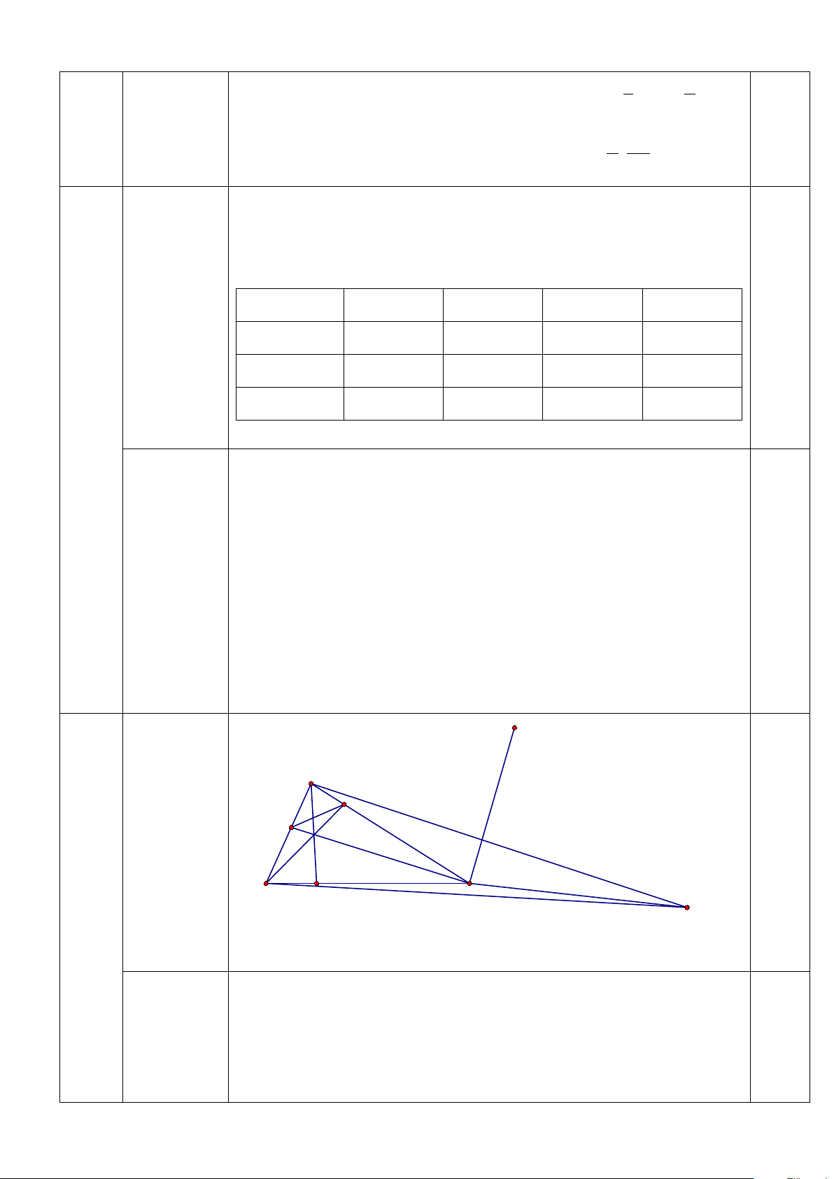 (k + ) + k = (k + )2 2 2023 2 1 1 1 1 − k 0,25 Với (k ∈) Vẽ hình 0,25 (0,25 điểm) x A E F j K H Câu 4 C (3 B D điểm) M a) Xét AE ∆ B và AF ∆ C có (0,75 điểm = 0 AEB AFC = 90 Góc A chung ⇒ AE ∆ B AF ∆ C (g − g) 0,25 Suy ra AE AB = 0,25 AF AC Xét AE ∆ Fvà AB ∆ C có : AE AB = , BAC chung 0,25 AF AC ⇒ AE ∆ F AB ∆ C (c − g − c)