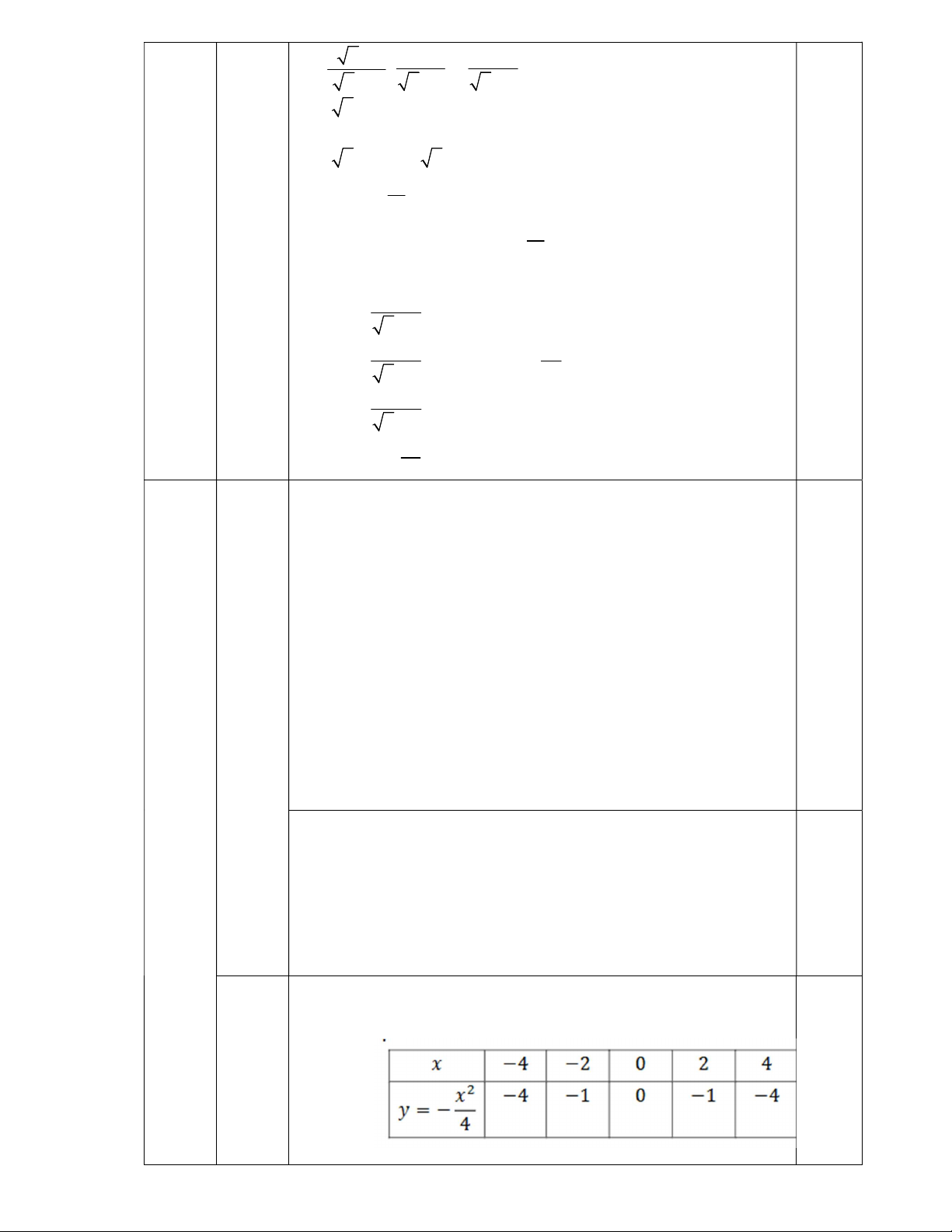 a) Vẽ đồ thị (𝑷) của hàm số trên.    Bảng giá trị:      2    (1 đ)    0,25    Đồ thị                     0,25