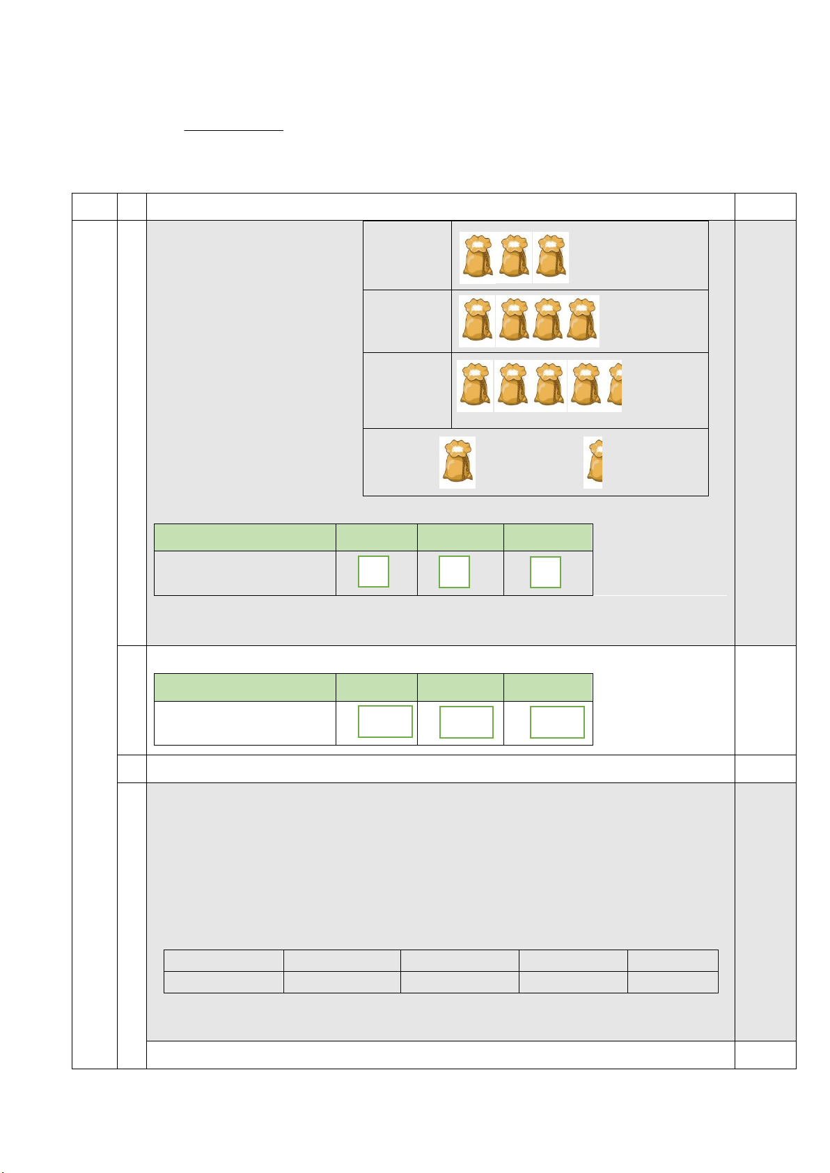 cửa hàng đó trong ba tháng đầu năm 2024 theo  mẫu sau:  Tháng 3    Tháng  Tháng Tháng  Tháng  1  2  3  Số gạo bán        ?  ?  đượ ?  c (kg)   50kg 25 kg