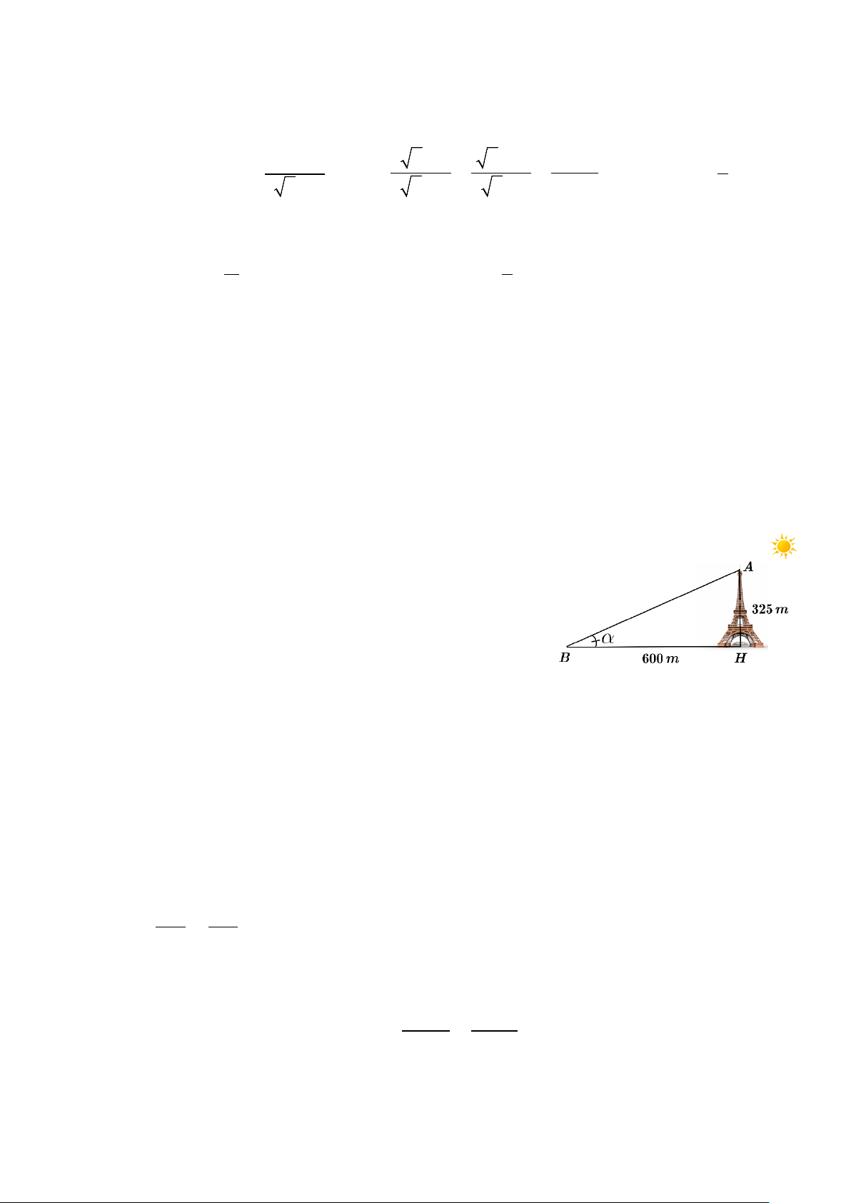 cao của tháp Eiffel là 325 m , hãy tính góc   tạo bởi tia nắng mặt