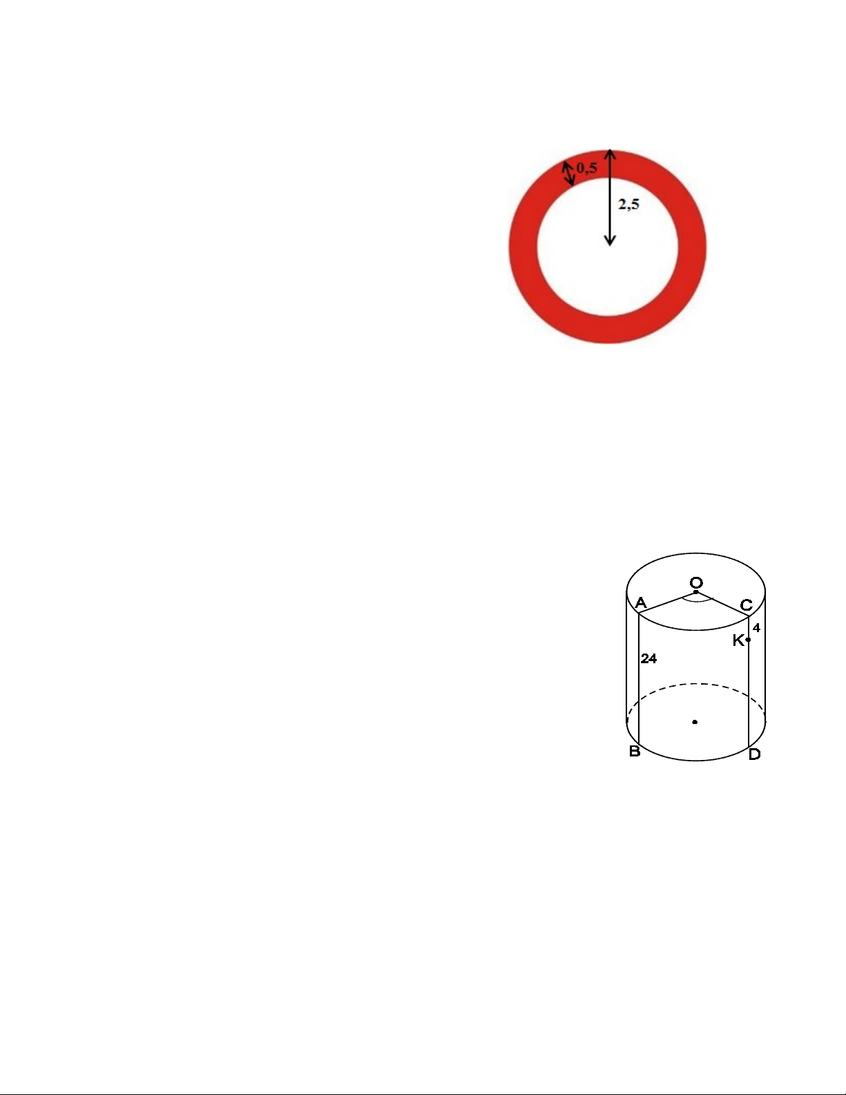 Cho hình trụ có bán kính đáy 9 cm và chiều cao 24 cm (như hình