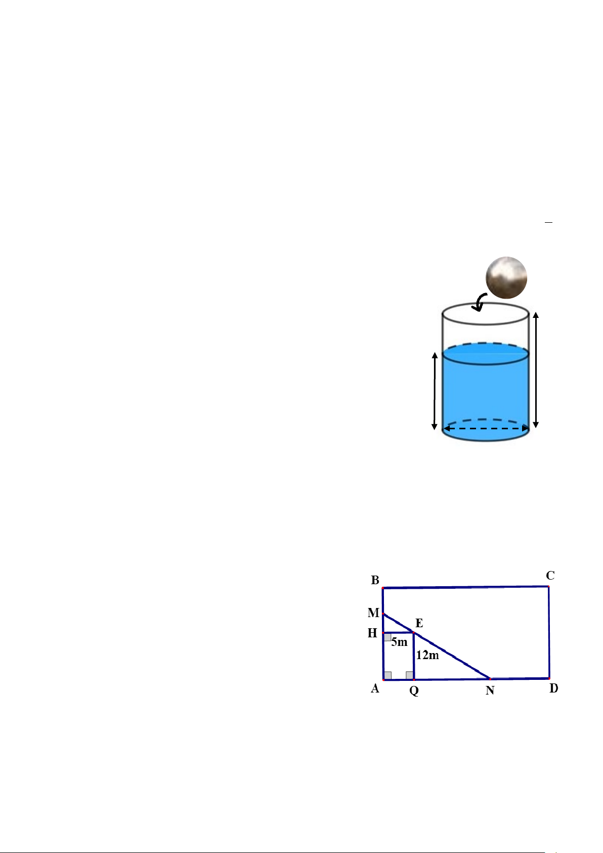 b) Vì thể tích mực nước dâng lên bằng thể tích viên bi 2 V = .r π .h = 4π nuoc dang 1 0,25 Suy ra h = 0,25 (cm) 1