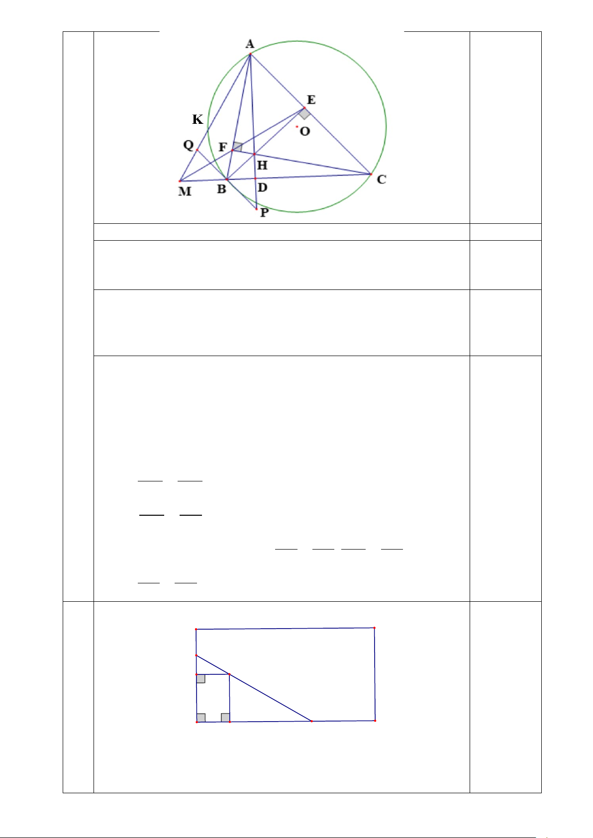 Vậy bốn điểm B, F, E, C cùng thuộc đường tròn đường kính BC. 0.25 b) MF.ME = MB.MC 0,25 MB.MC = MK.MA 0,25 Suy ra: ME.MF = MK.MA 0,25 Suy ra: MF ∆ A MK ∆ E 0,25