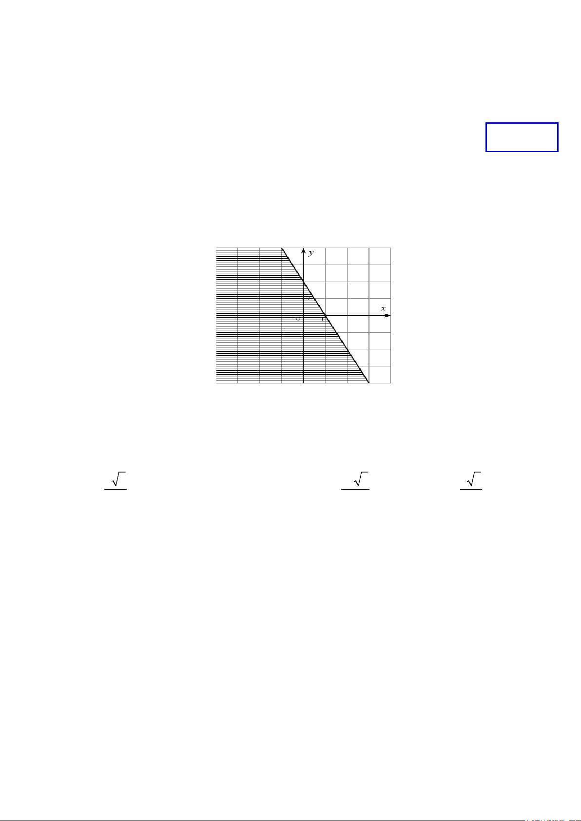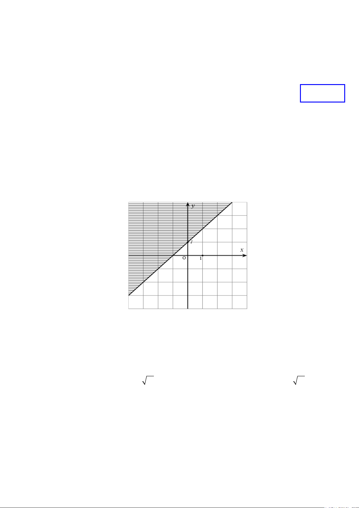 Câu 3. Miền nghiệm của bất phương trình nào sau đây được biểu diễn bởi hình vẽ dưới đây (kể cả bờ)?