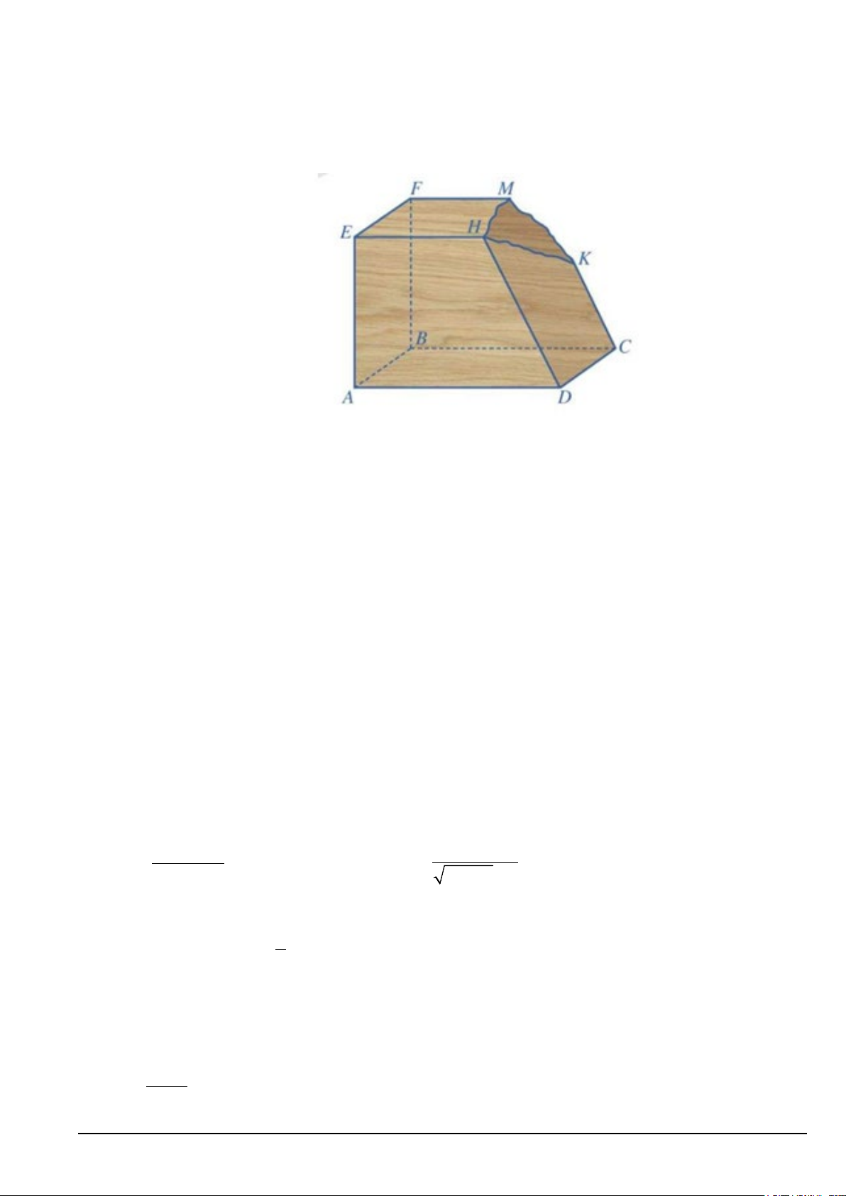 Câu 1. Một khối gỗ có các mặt đều là một phần của mặt phẳng với (EFMH ) / / ( ABCD), KC / /HD .