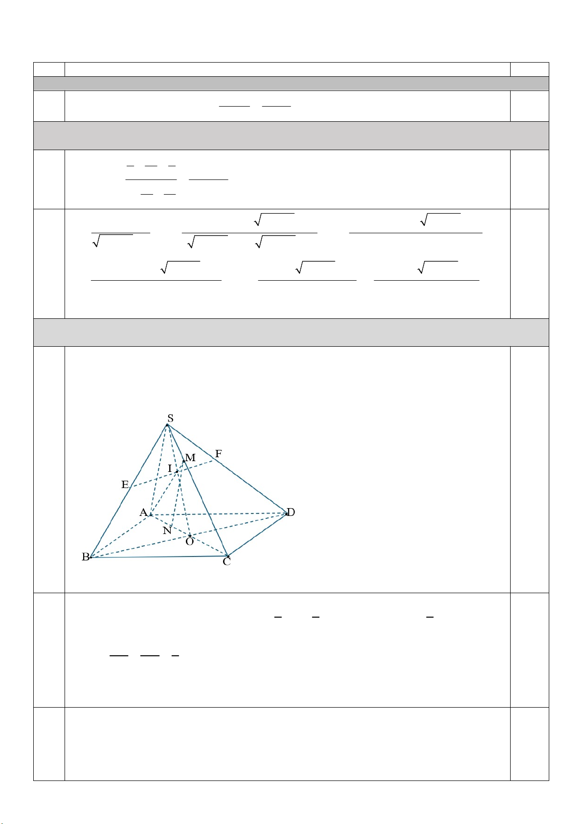 Câu 1. Cho hình chóp S.ABCD có đáy là hình bình hành tâm O . Gọi M , N lần lượt là trung điểm của