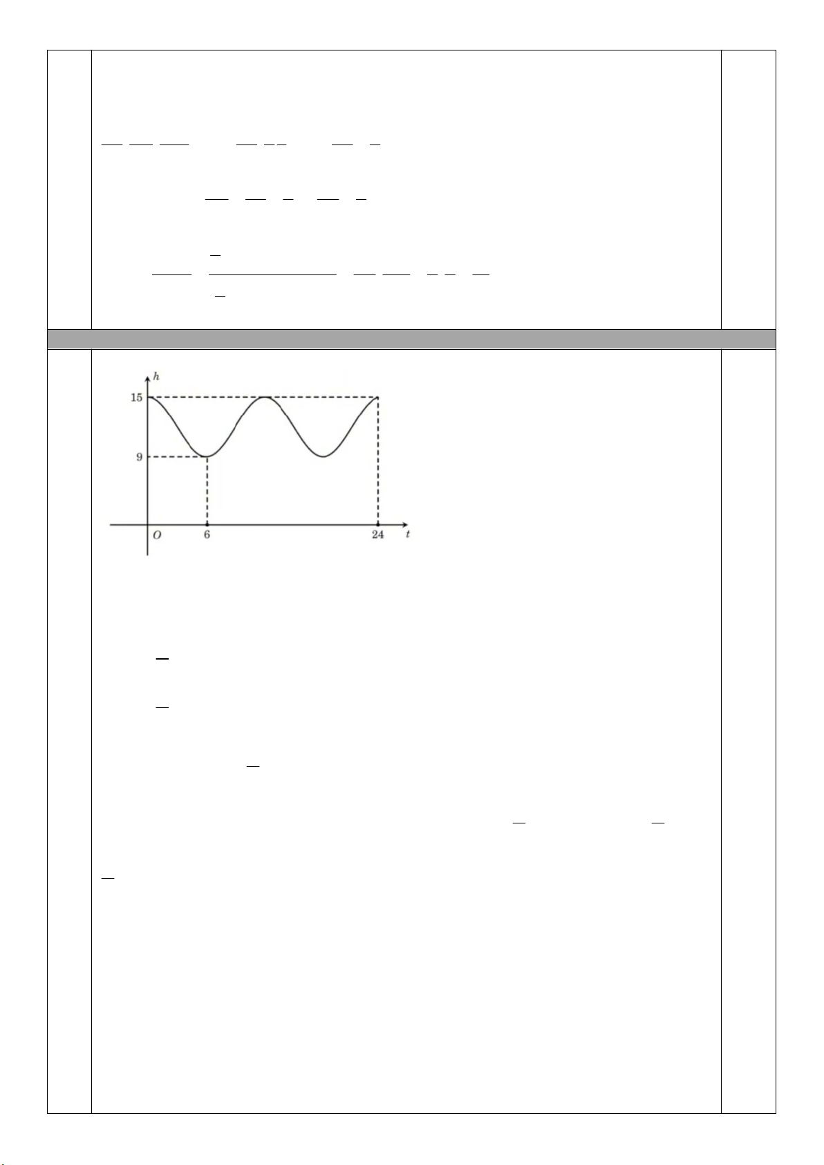 Chiều cao của mực nước bằng 15 mét h(t) 15 12cos t 3 15 cos t 1 6 6