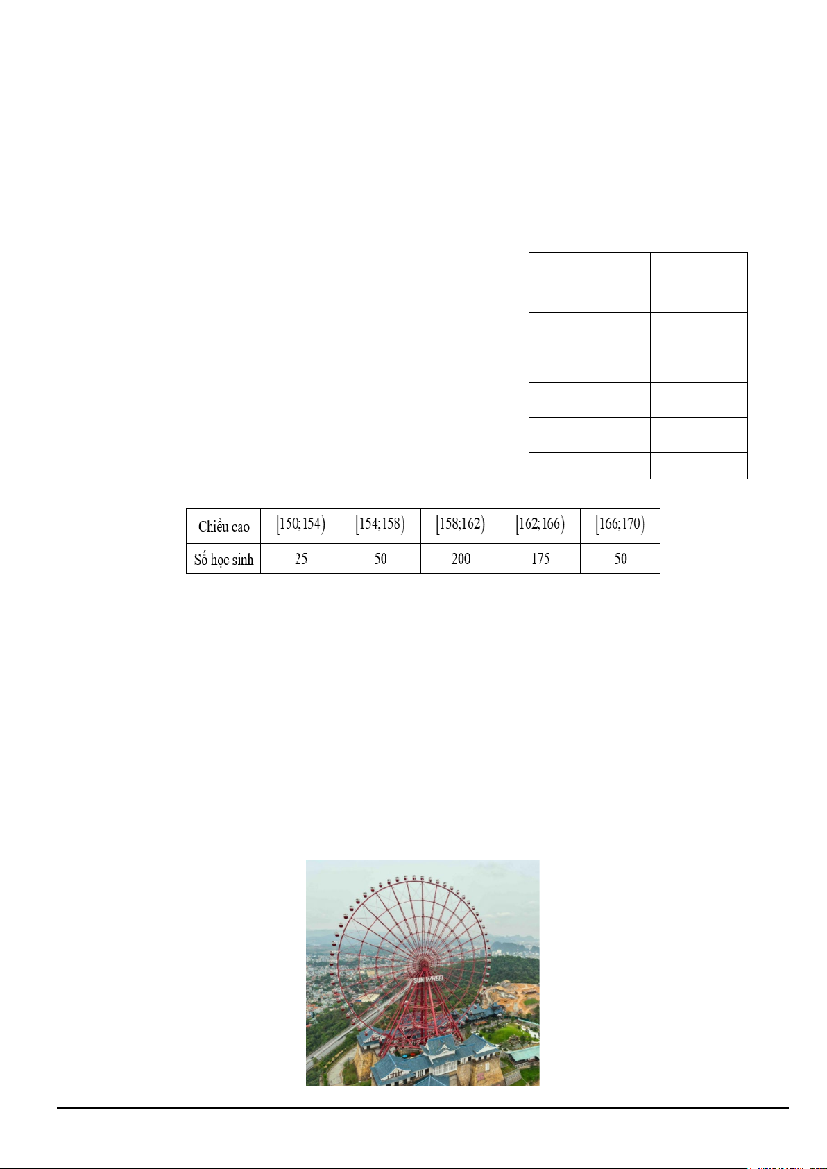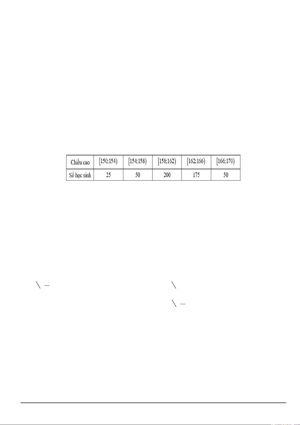 Câu 3. Đo chiều cao (tính bằng: cm) của 500 học sinh trong một trường THPT ta thu được kết quả như sau: