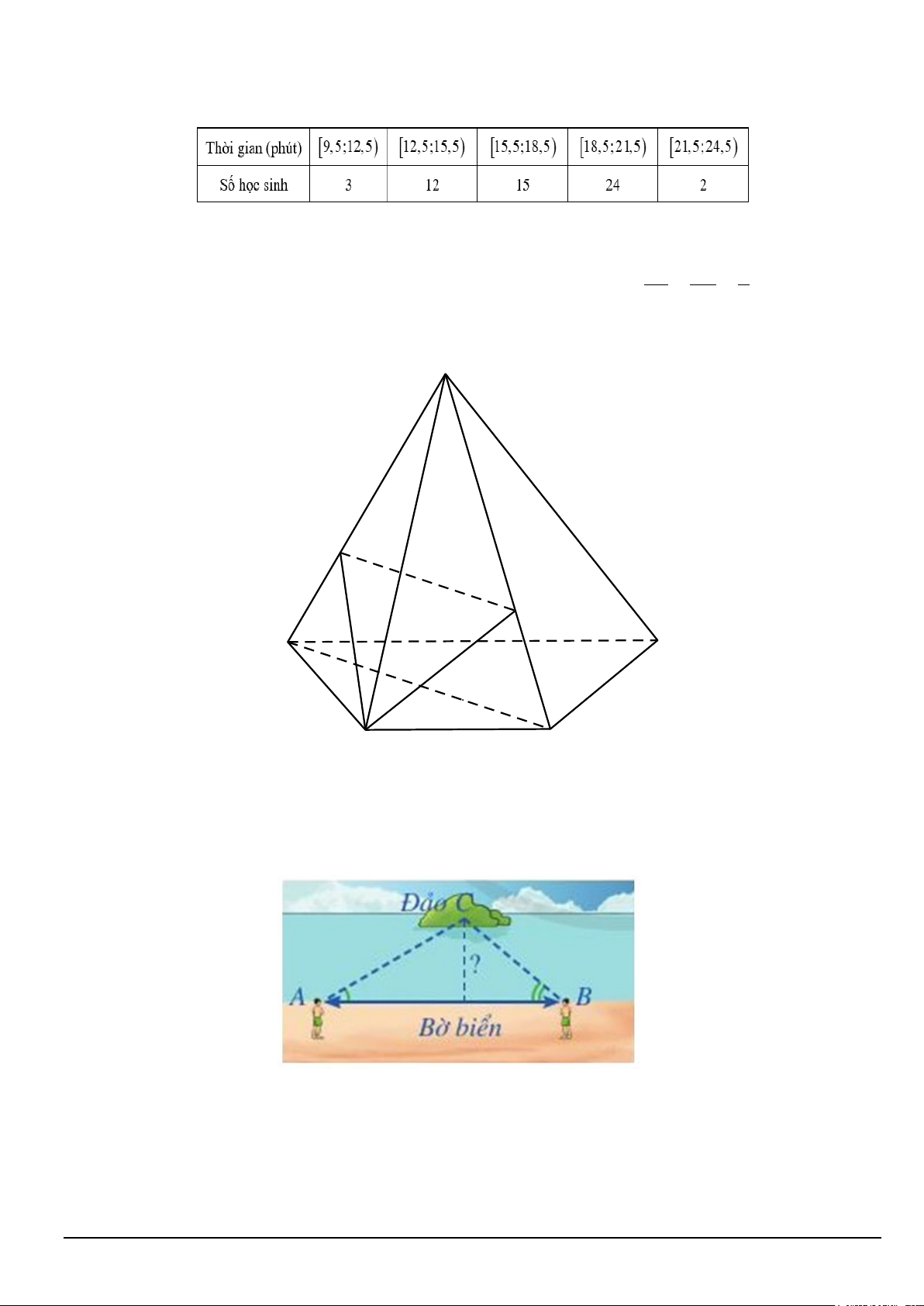 Câu 6. Đứng ở vị trí A trên bờ biển, bạn An đo được góc nghiêng so với bờ biển tới một vị trí C trên đảo là