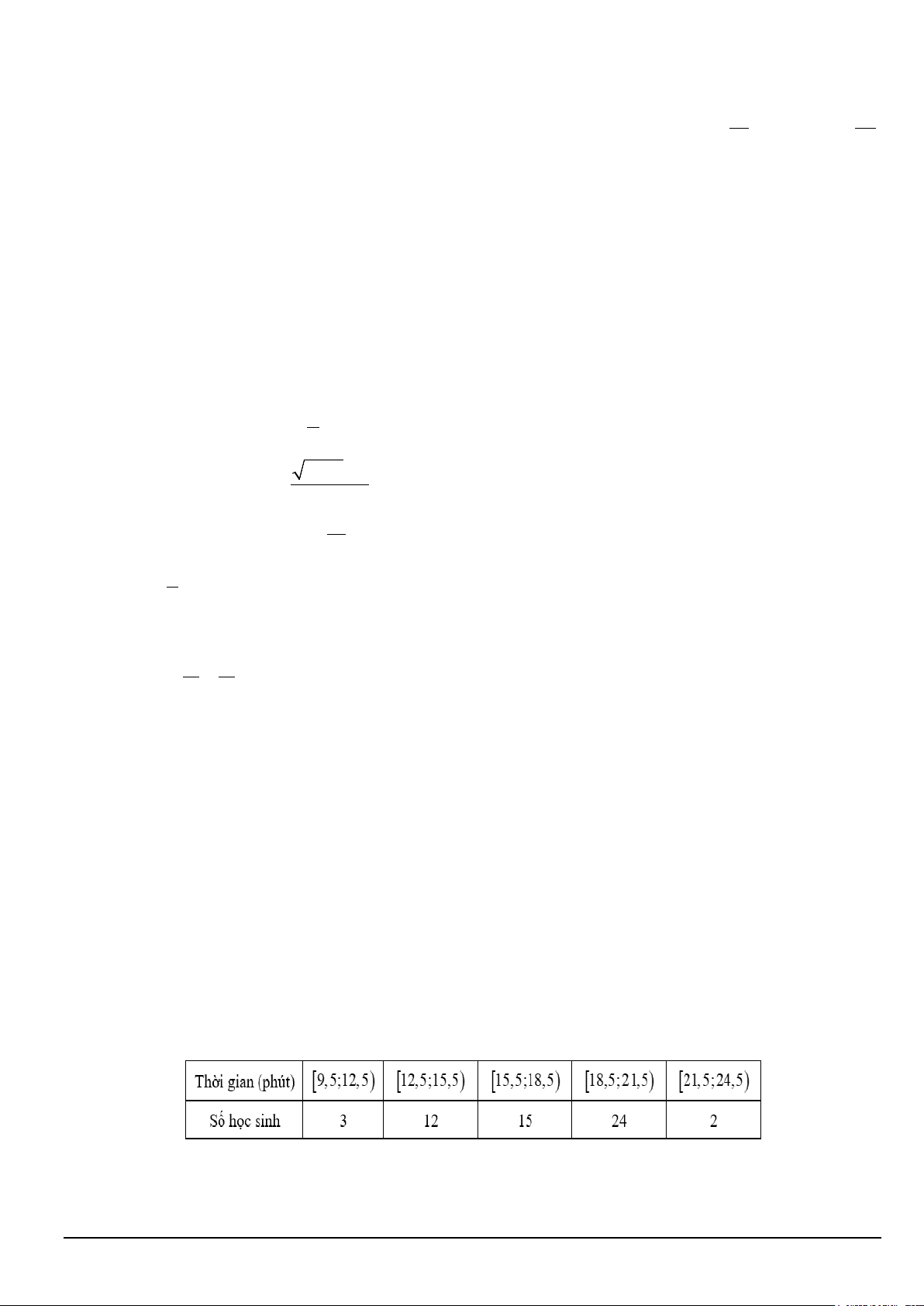 Câu 12. Khảo sát thời gian tập thể dục của một số học sinh khối 11 thu được mẫu số liệu ghép nhóm sau: Chọn khẳng định sai: