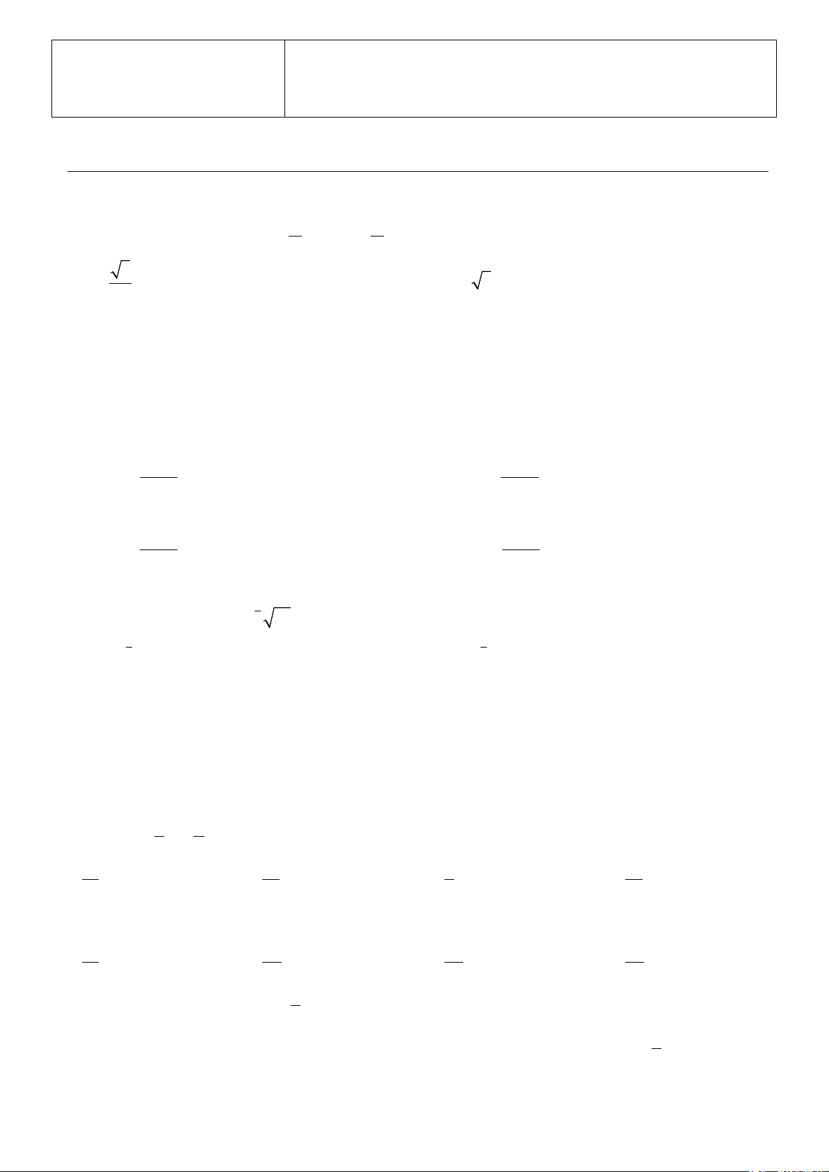 Phần 1 ( 3 điểm). Trắc nghiệm nhiều phương án lựa chọn (Thí sinh trả lời từ câu 1 đến câu 12. Mỗi