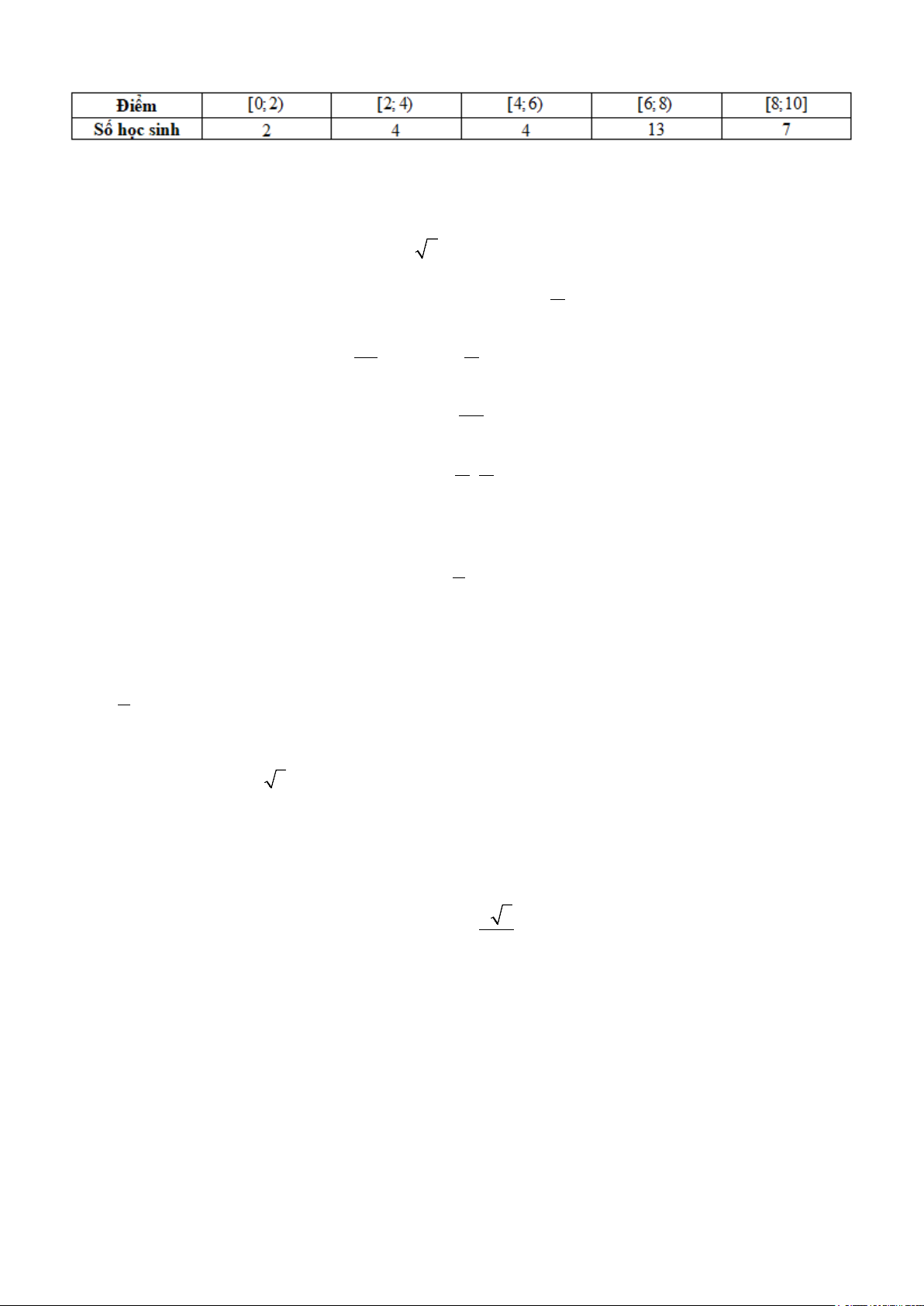 Câu 12. Khi thống kê điểm môn toán của 30 học sinh lớp 11, ta thu được mẫu số liệu ghép nhóm được cho ở bảng sau