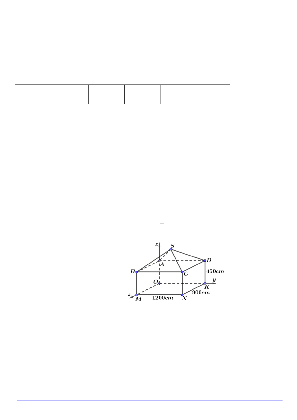 Câu 1. Một ngôi nhà gồm hai phần: phần thân nhà dạng hình hộp chữ nhật ABCD.OMNK có chiều dài
