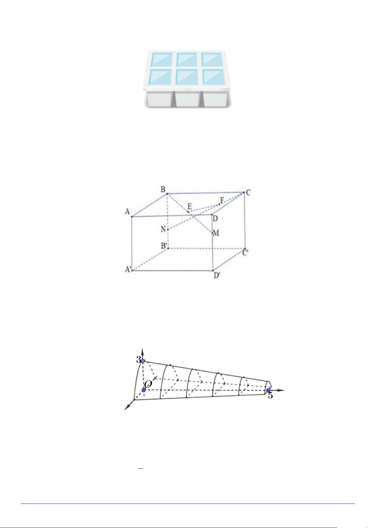 Câu 2. Cô Hà có 10 khay làm đá giống nhau (như hình dưới), mỗi khay sẽ tạo được 6 viên đá. Các viên đá có