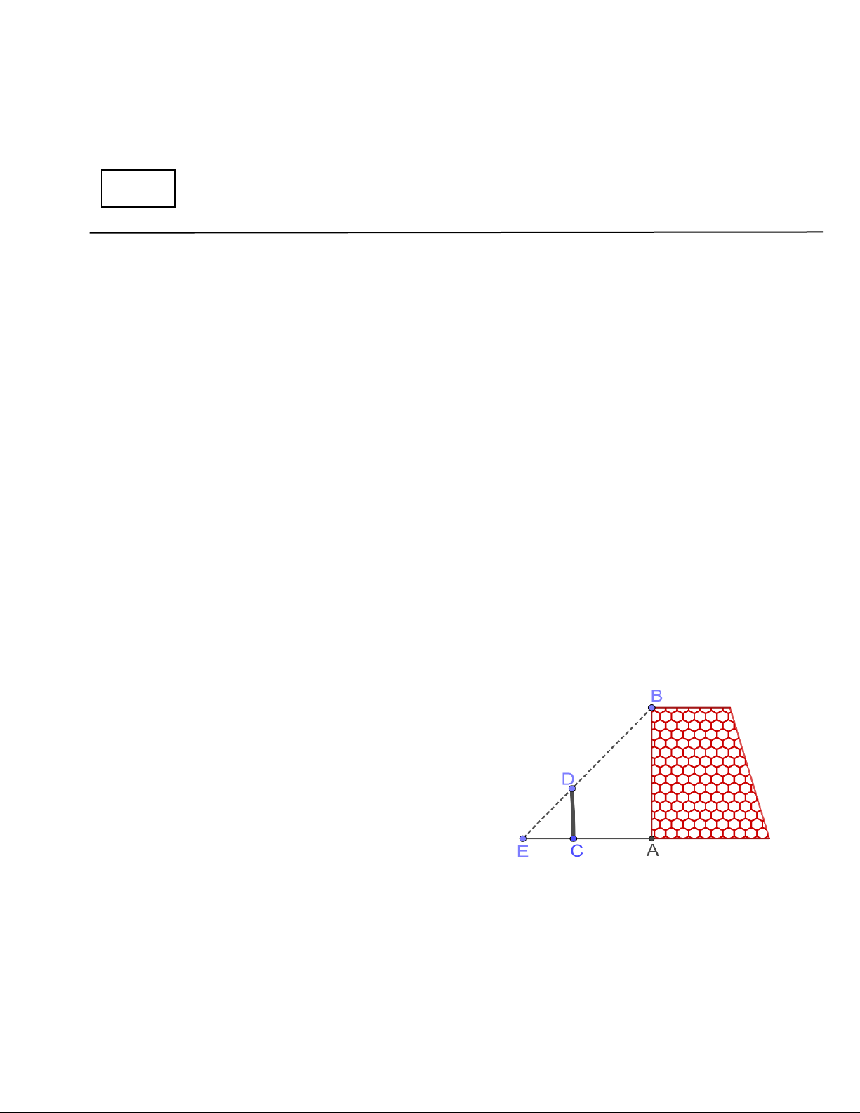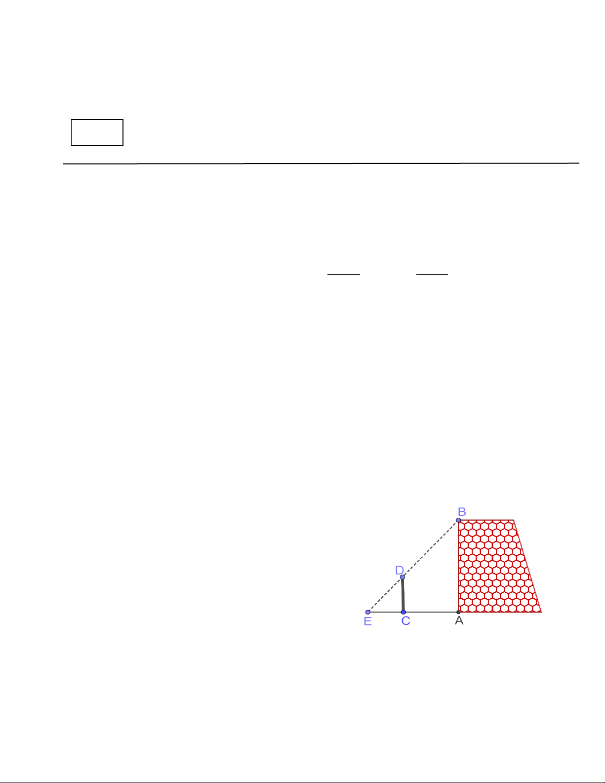 0,5 điểm Theo hệ quả định lí Ta-lét có CD EC = (1) AB EA Mà CA = 5m; EC = 2,5m EC 1 ⇒ CA = 2EC ⇒ = và CD = EA 3 3m Thay vào (1), ta được 3 1