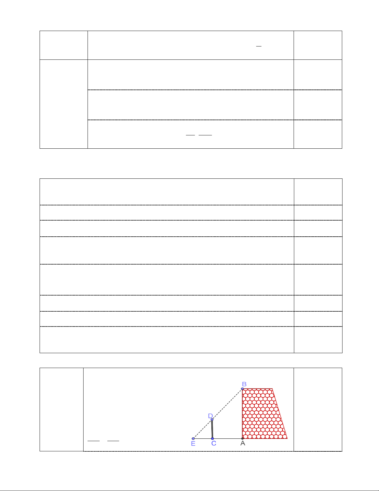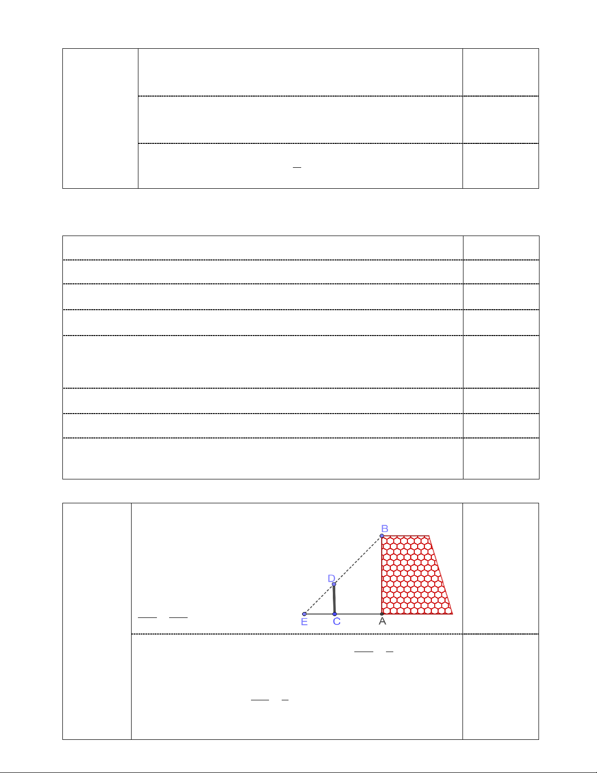 Theo hệ quả định lí Ta-lét có Ý 1 CD EC = (1) 0,5 điểm AB EA Mà CA = 5m; EC = 2,5m EC 1 ⇒ CA = 2EC ⇒ = và CD = EA 3 3m Thay vào (1), ta được 3 1