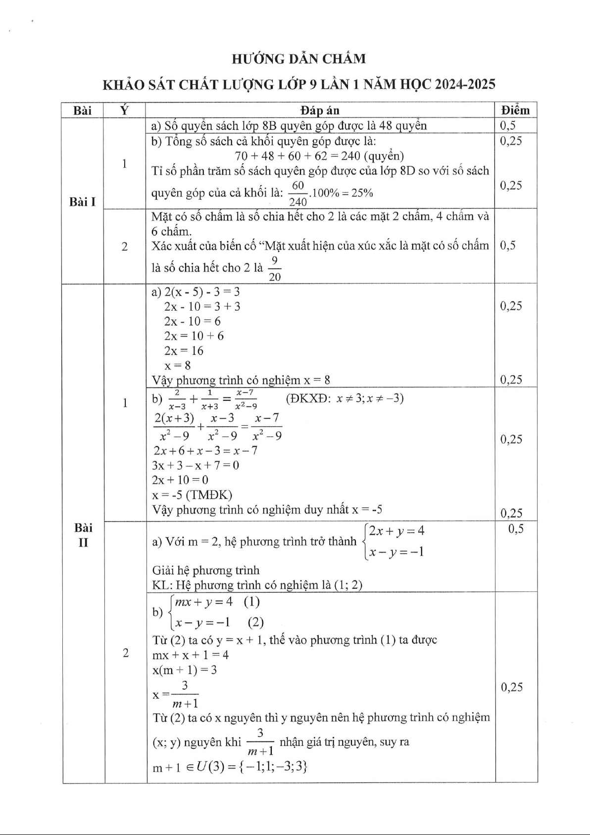 Đề khảo sát Toán 9 lần 1 năm 2024 – 2025 phòng GD&ĐT Sơn Tây – Hà Nội
