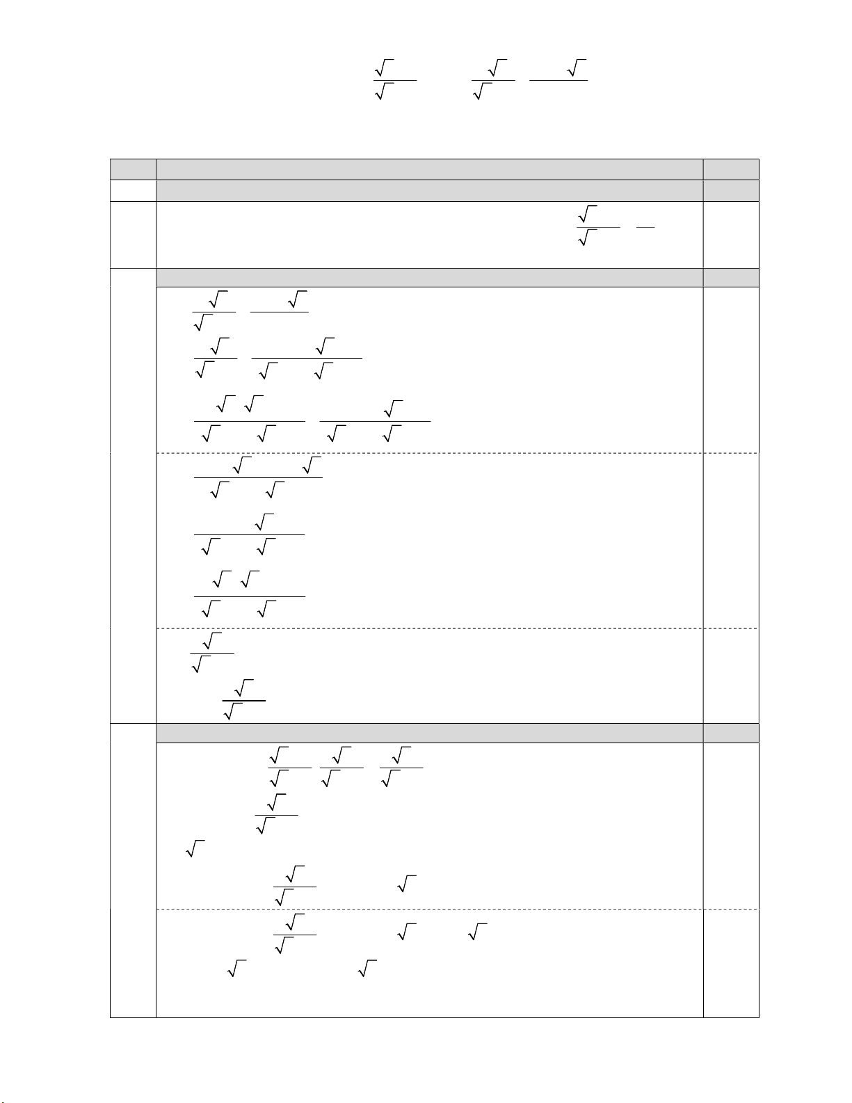 3) Xét biểu thức P  AB . Tìm tất cả các giá trị của x để P  0 .  Câu  Nội dung  Điểm  1)