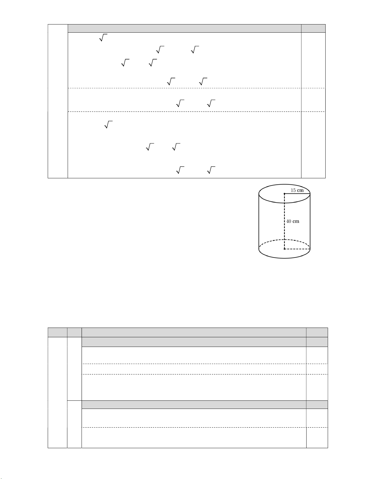 1) Một thùng đựng nước có dạng hình trụ với chiều cao là 40 cm và bán  kính