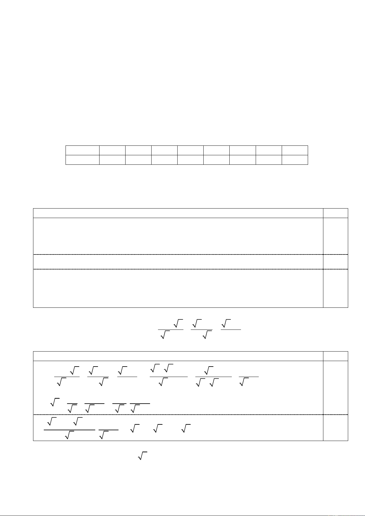 Lưu ý: Nếu học sinh làm theo cách sau mà đúng vẫn chon điểm tối đa.