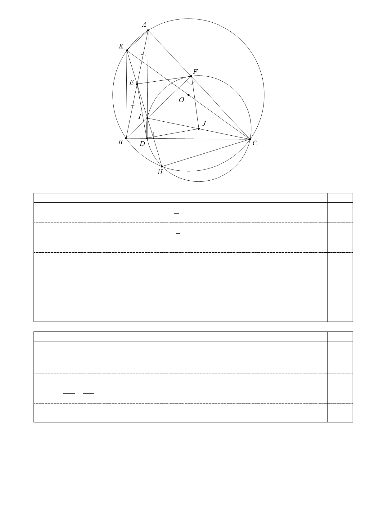 CK của đường tròn (O; R) . Chứng minh tứ giác AKBI là hình bình hành và 3 điểm K , E , H thẳng hàng. - Trang 3 - Nội dung Điểm
