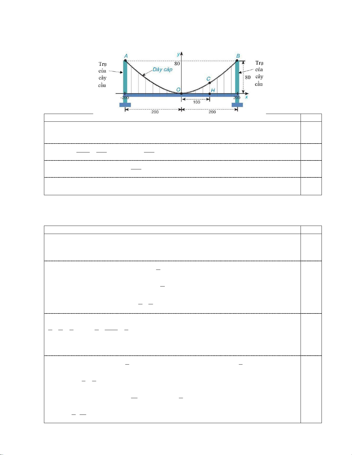 Câu 3 (1,0 điểm). Một cây cầu treo có trụ tháp đôi cao 80 m so với mặt của cây cầu và cách nhau 400 .