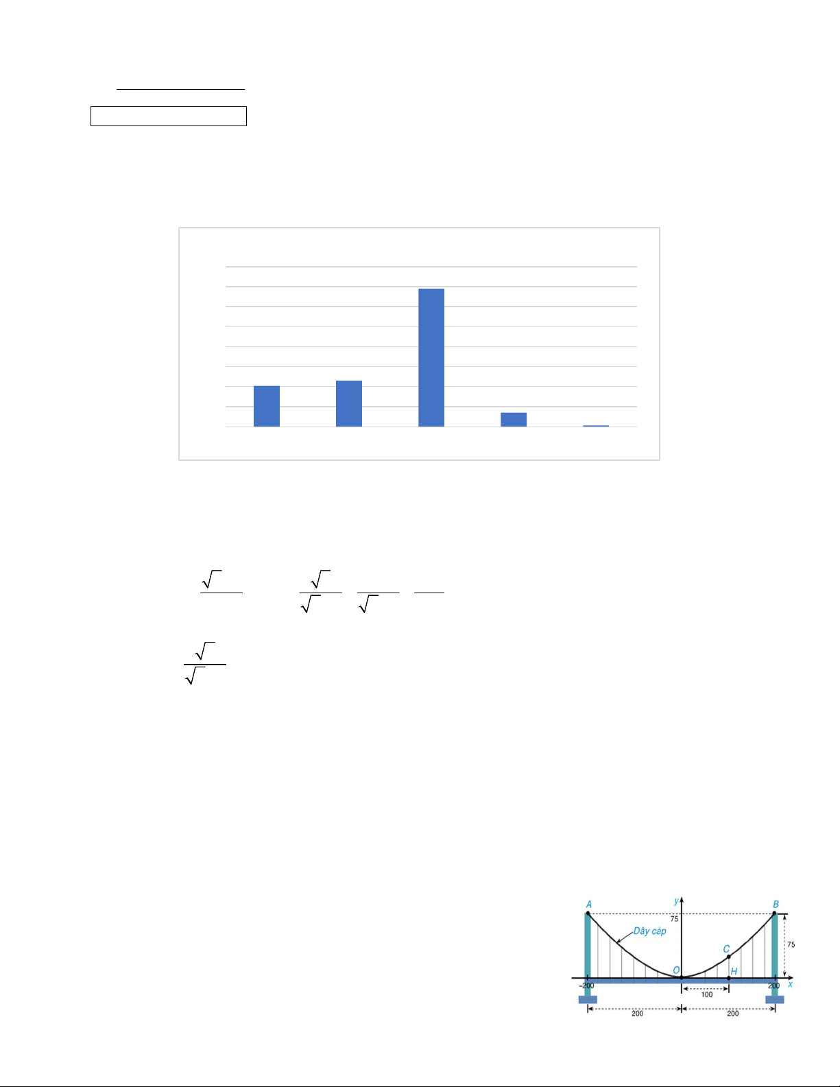 Ta có điểm (200;75) thuộc đồ thị hàm số  2 y = ax  nên  2 . a 200 = 75 .  0.25  Suy ra  75 3 a = = .  2 200 1 600   Vì  3 3 a =  nên  2 y = x .  1600 1 600 Với  3 0.25  x = 100 ta có  2 y = 100 =18,75.  1 600
