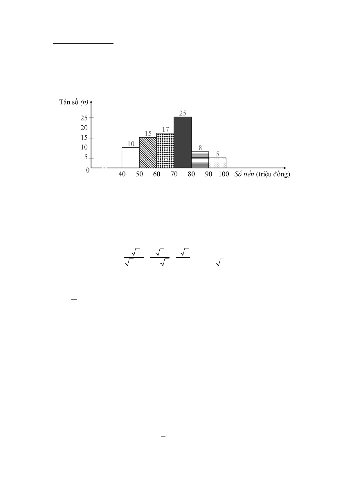 1) Một ngân hàng thống kê số tiền (đơn vị: triệu đồng) mà 80 hộ gia đình vay để phát triển sản