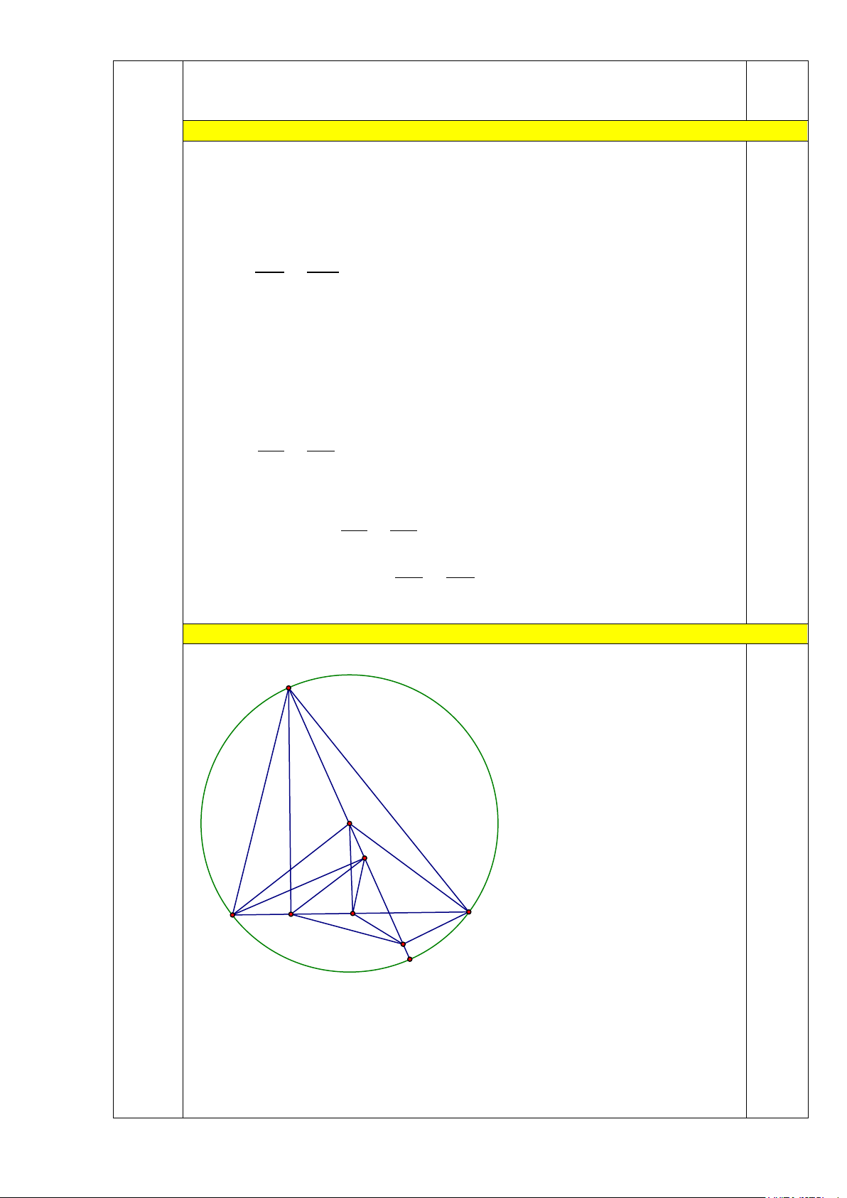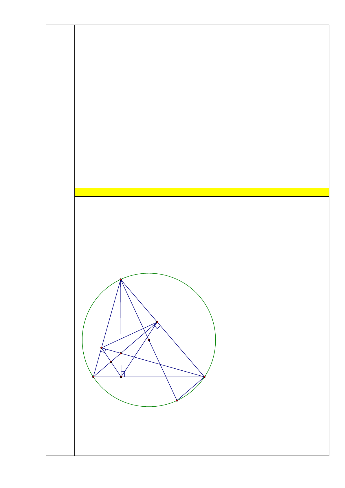 1 là nghiệm của phương trình nên 2 1 1 2 ⇒ x = 6x − + 8 1 1 Suy ra 6x − − 6x + 8 6 − x + x + 8 6. − 6 − + 8 1 − 1 1 2 ( 1 2) ( ) T = = = = 0.25 x x x x 8 − 2 1 2 1 2 a) (1,5 điểm) 4 A E 0.5 O F H I B C D M Ta có: F