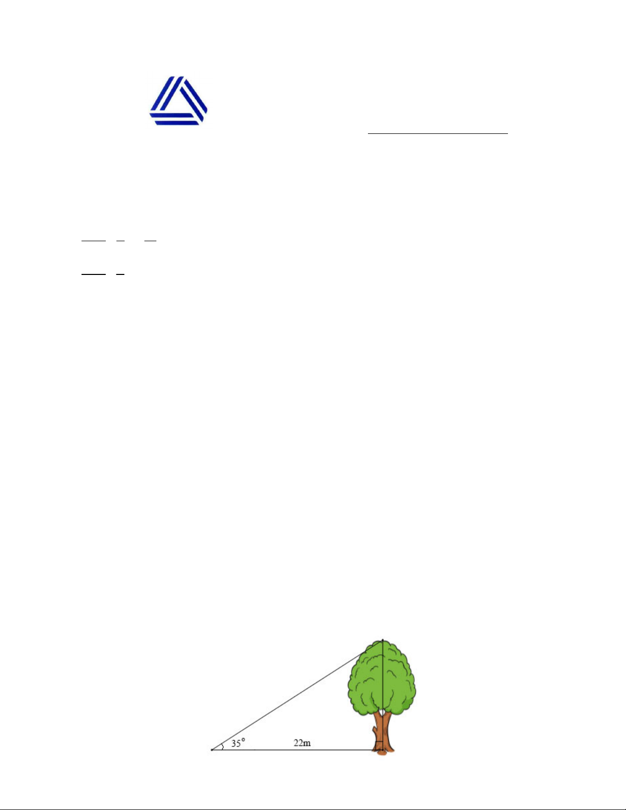 1) Bóng trên mặt đất của một cây dài 22m. Tính chiều cao của cây (làm tròn kết quả đến hàng đơn vị), biết